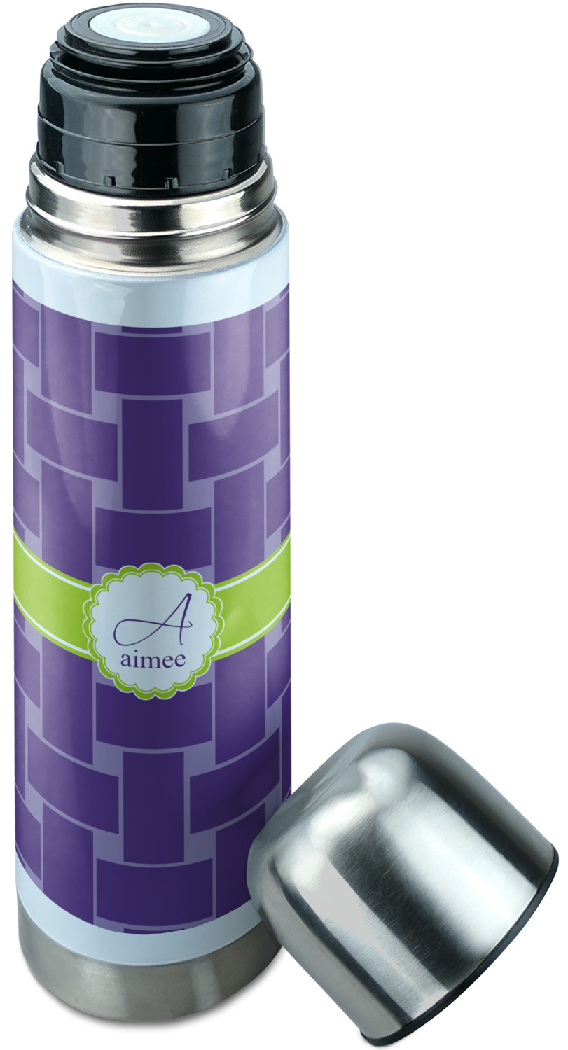 Manufactured from stainless steel, this thermos is built durably and double-walled insulated to preserve the temperature of your drink for hours. It also features a screw off lid that is made to also function as a small cup. Upon unscrewing this part of the thermos bottle, a pop-open, pour feature emerges. This feature allows you to slowly pour your beverage into your lid, ensuring a steady, controlled pour into your lid or other cup. With a capacity of 25 ounces, these large thermoses can hold several servings of your favorite beverage. Your customization is displayed all around the bottle with bright, vibrant color.