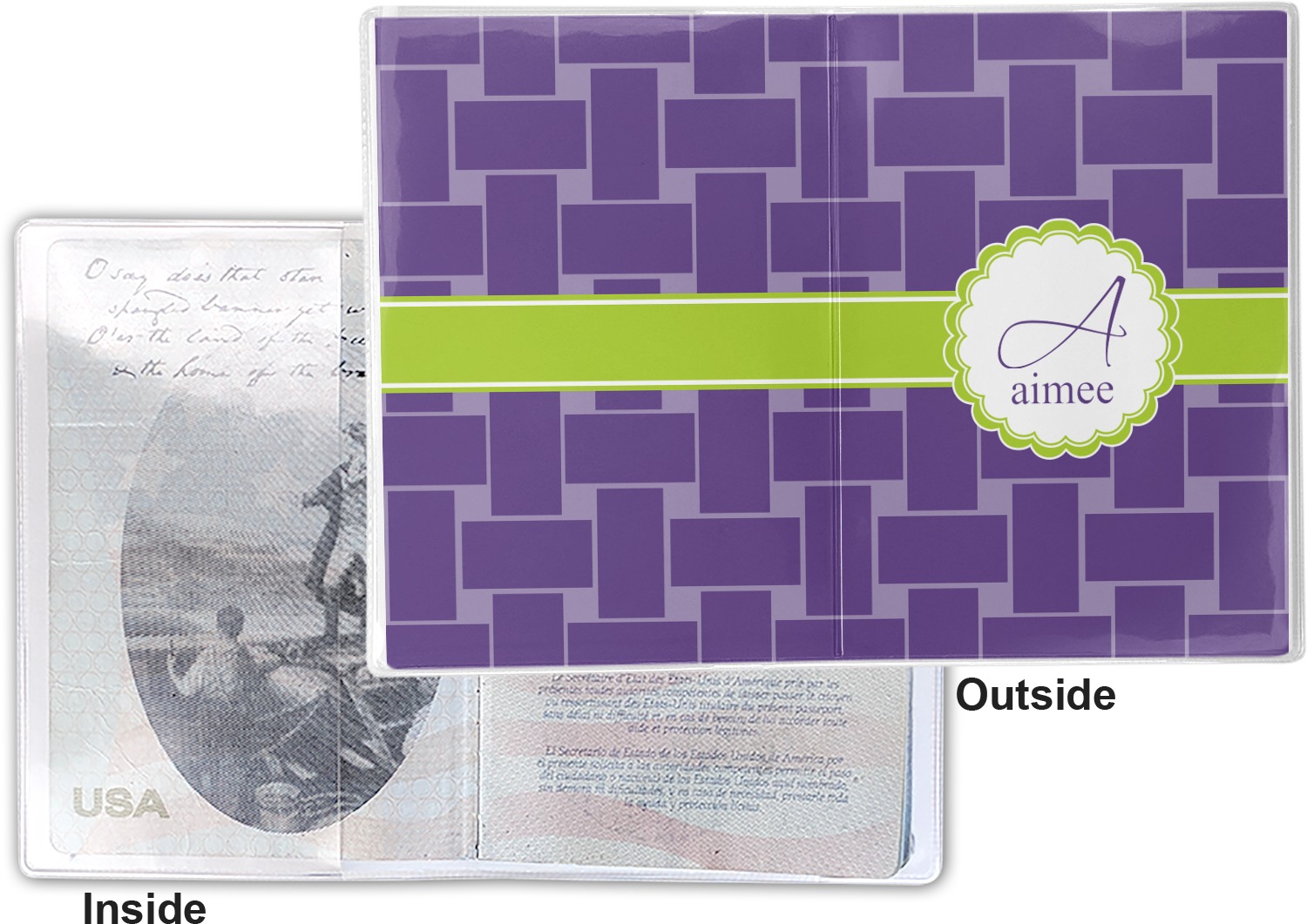 This cover is made of a sturdy clear vinyl with a personalized vinyl insert inside. There is a large and a small pocket on either side to hold the covers of your passport easily and firmly. The passport holder is approximately 7.5" x 5.25", the perfect size to snugly fit your passport. This slim cover is the perfect way to protect your passport without being one more bulky item you have to carry.