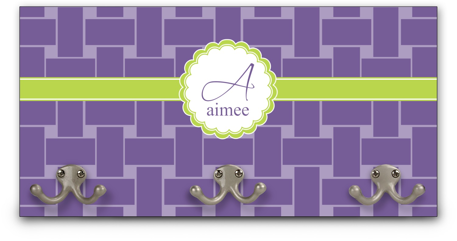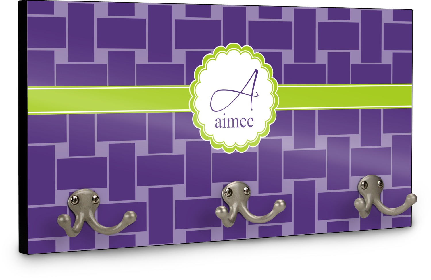 This coat rack is the perfect way to add some personality to your wall or entryway. The board is made of a strong maple that is approximately 16" x 8". The three 2-prong hooks are a sturdy metal that have three screws attaching them to the board. Your design is printed right onto the front of the board while the back and sides are a simple black.