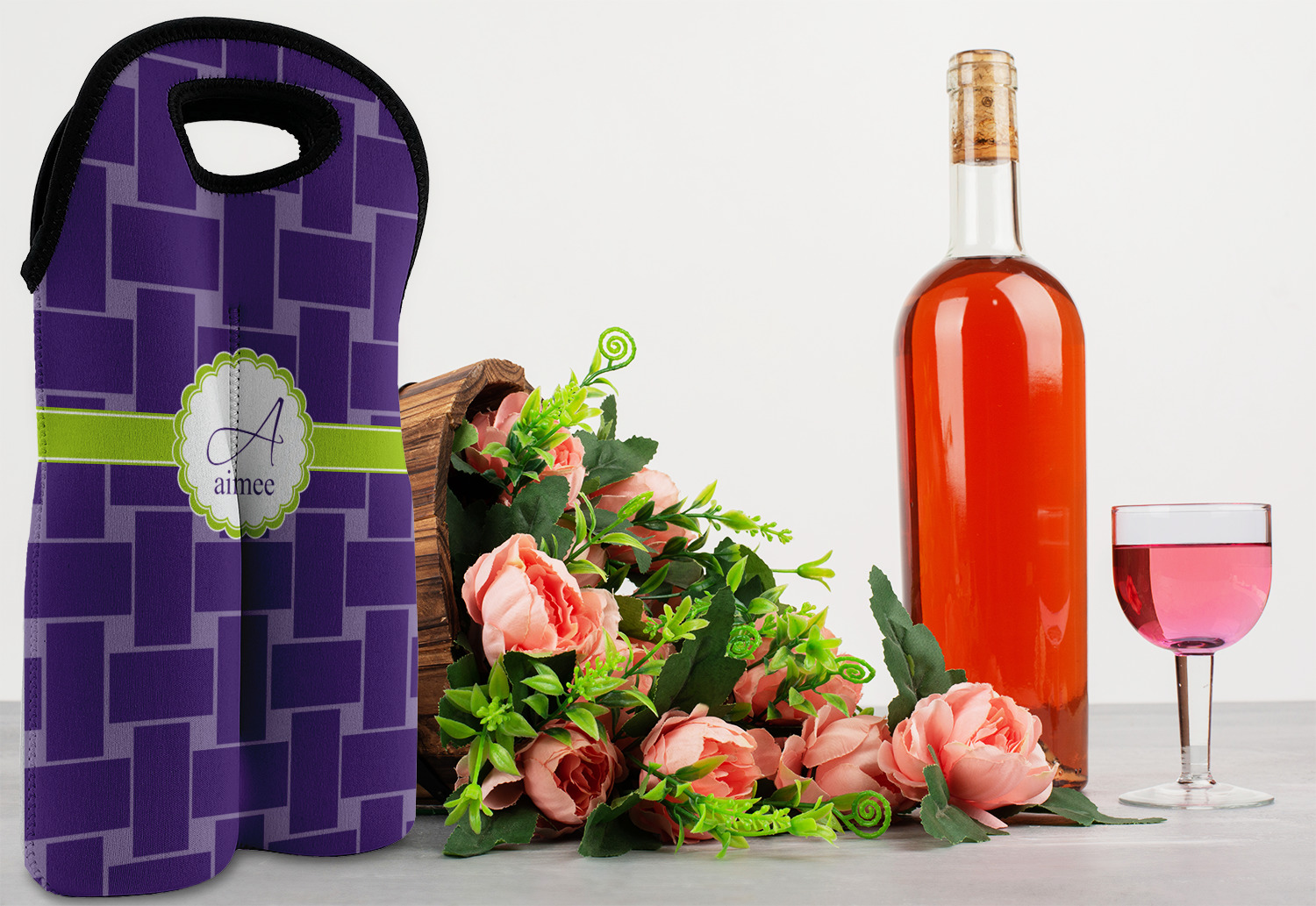 These tote bags are insulated to keep the bottles cold and have a stitched separation down the middle and double handles to keep the two bottles safe and secure during travels.