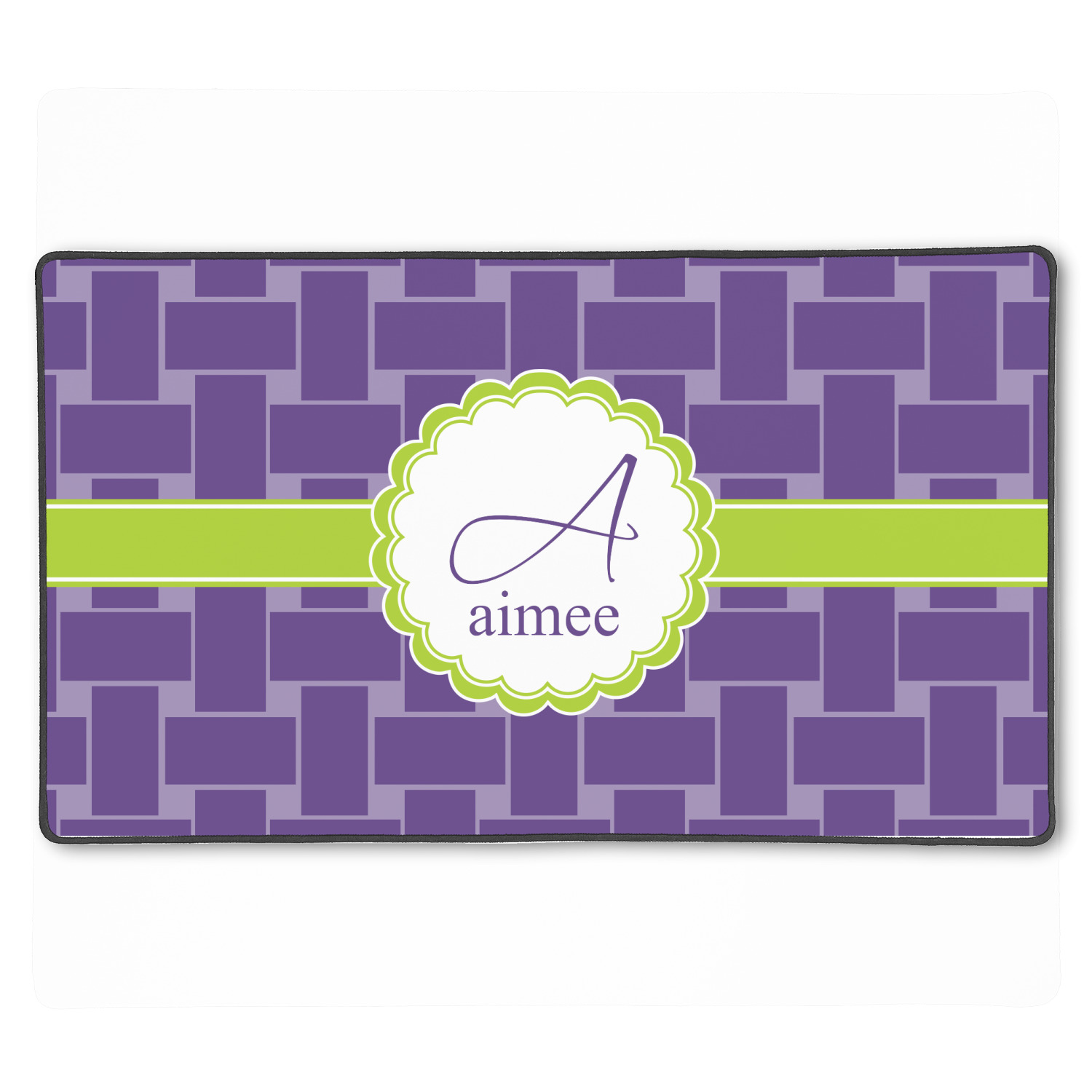 This fun geometric pattern takes the traditional waffle weave and infuses it with bold purple and lime green.