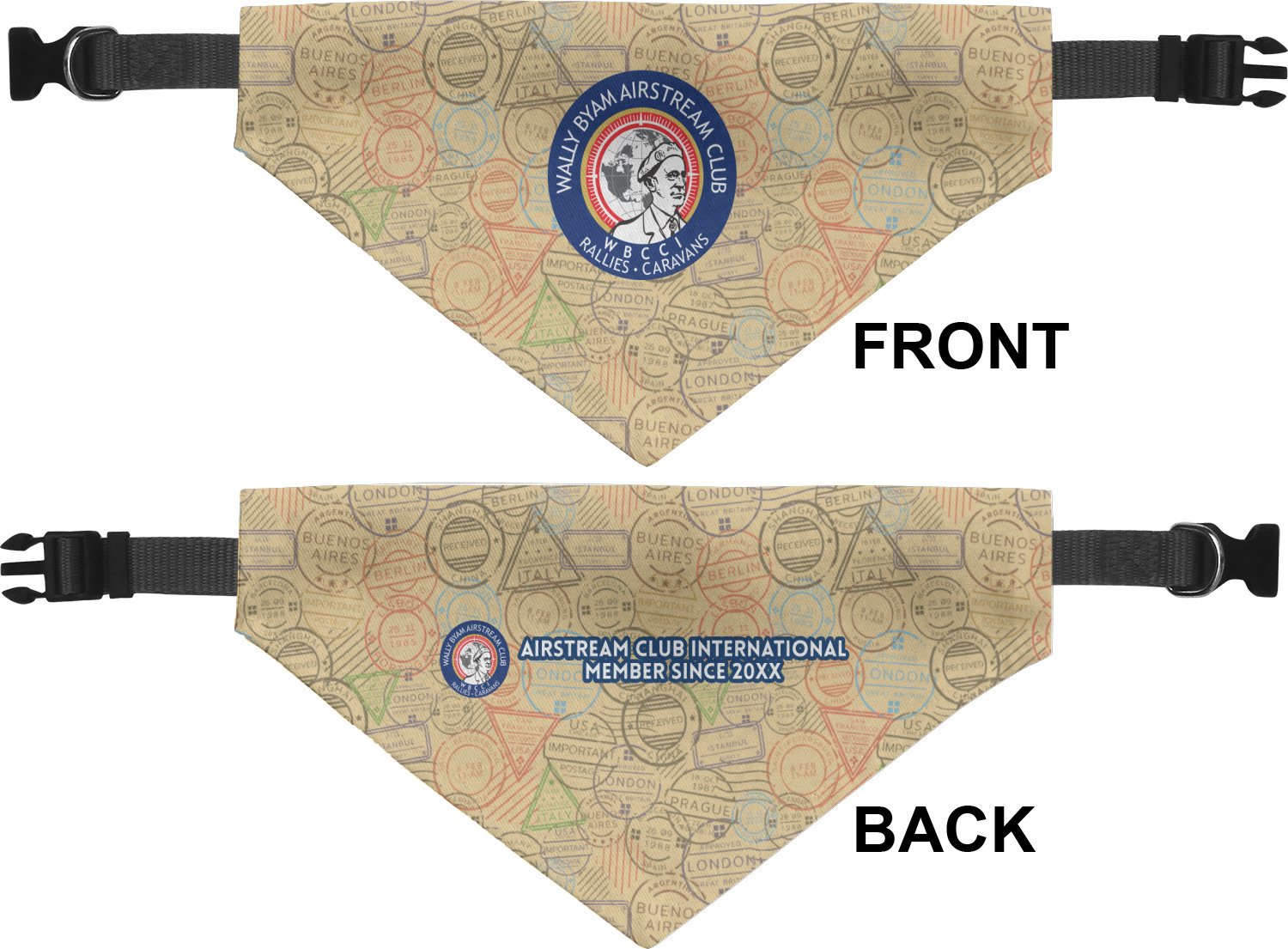 We print the front and back of these dog bandanas with your customized design. The bandana itself is made from a durable polyester, sewn together with a gap large enough to accommodate any collar. Regardless, the bandana includes a plain black, canvas collar with plastic snaps, that can easily be removed if desired. These dog bandana collars are available in four sizes: small, medium, large, and extra large. Please see our sizing chart for more information regarding the dimensions of each size.