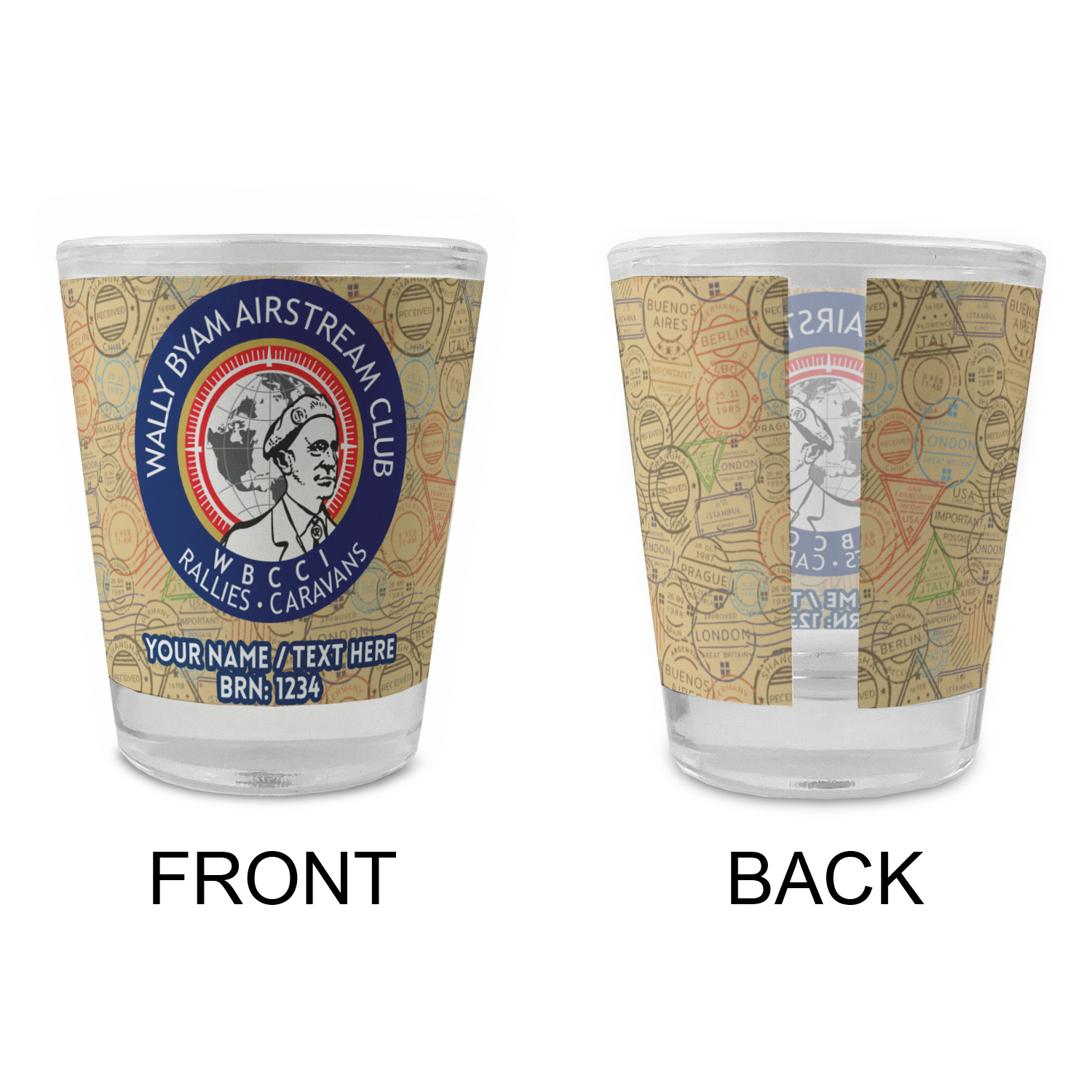 Made with frosted glass, these shot glasses are printed in full color with the design of your choice. They are a standard 1.5oz shot glass and are 2.4" tall. The print is wrapped around the shot glass in a full wrap and boldly displays your customization.