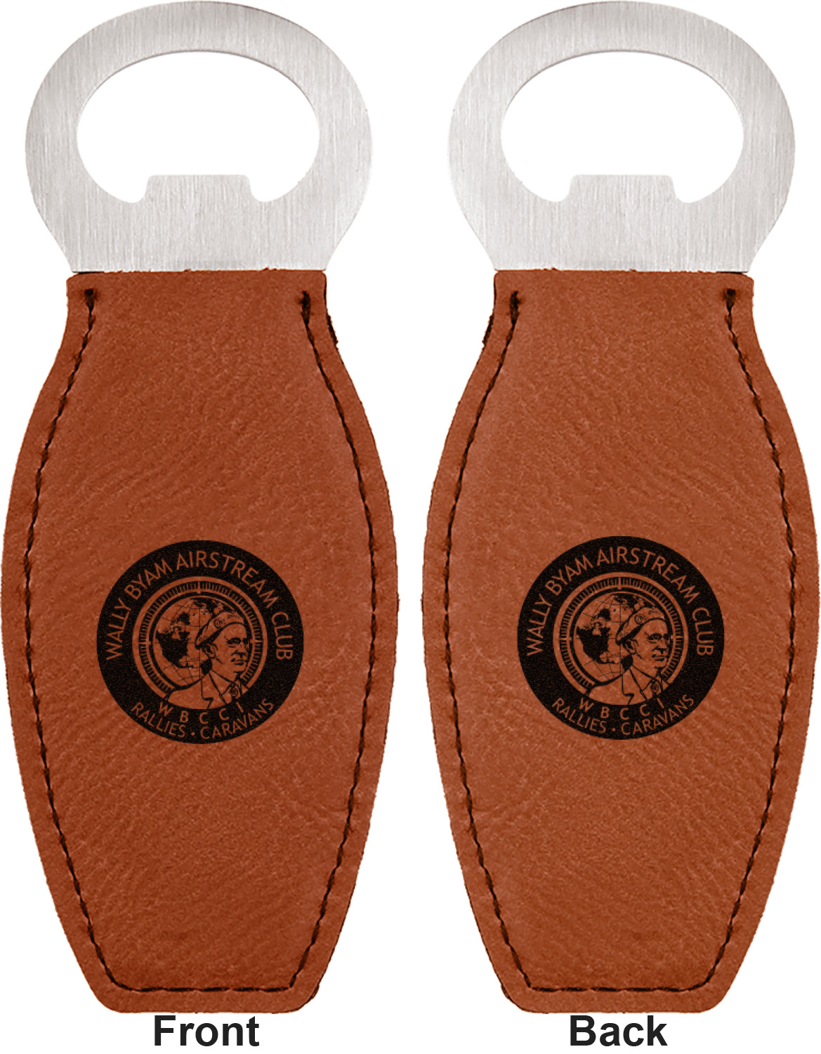 Built from stainless steel, these custom bottle openers are wrapped in a cognac-colored leatherette. Sharp, black stitching lines the edges for extra durability and a finished touch. Your personalization is laser-engraved onto the surface of this leatherette, leaving behind a crisp, black coloration. At 4.6 by 1.8 inches, this beer bottle opener gives you much of leverage when trying to open a stubborn bottle. On the opposite end of the opener, you'll find a magnet that you can use to display your new, unique bottle opener!