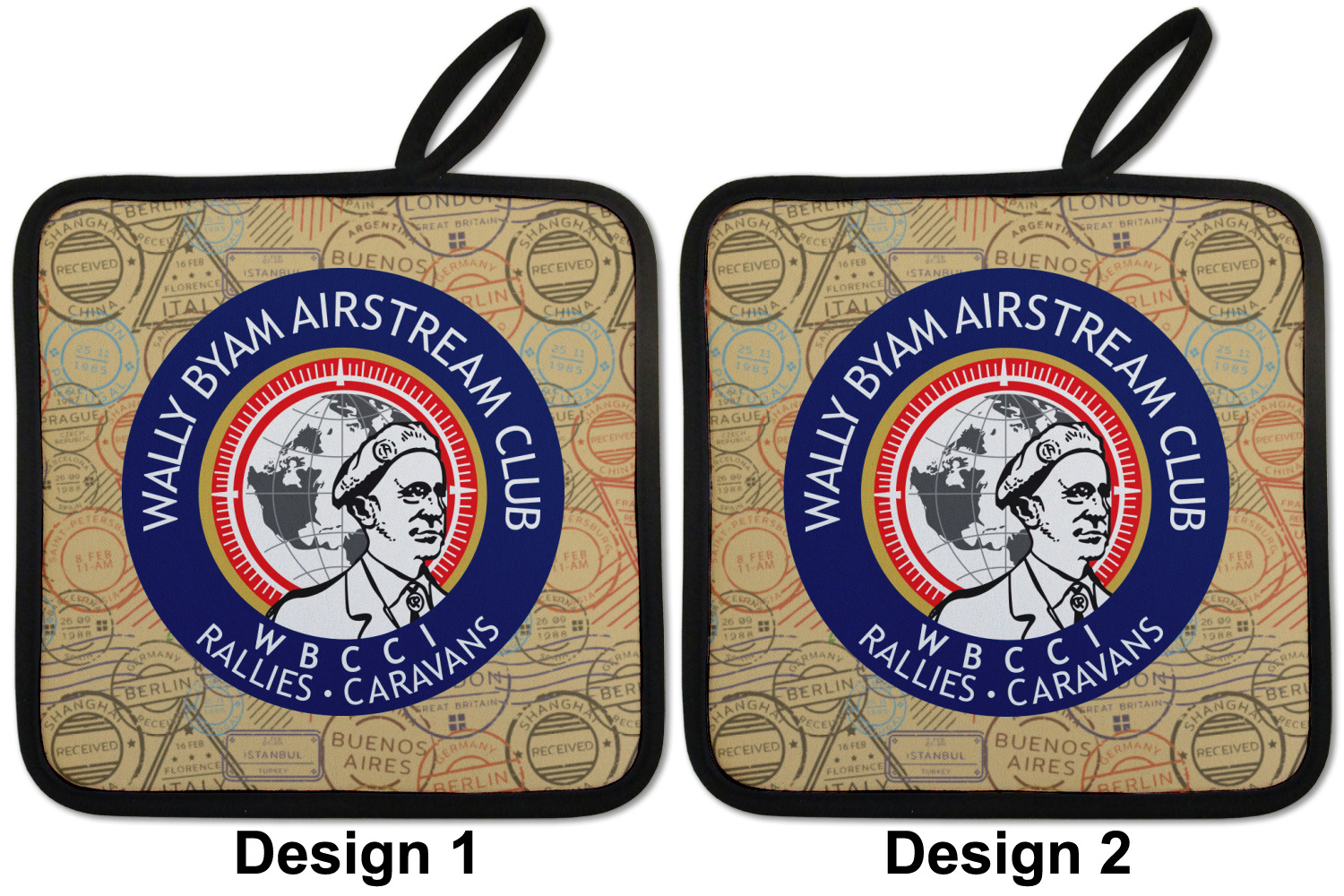 Our personalized pot holders feature a neoprene front that displays your personalization in vibrant colors. The backing of the hot pot holder is rubberized; the textured backing allows you to have a great grip when using this custom pot holder. The two materials are joined with a sleek, black trim, and the holder also includes an attached loop for hanging and storage. The pot holder is approximately 8.75 inches by 8.75 inches and 0.25 inches tall, while the fabric loop is 2.5 inches long. You can purchase a kitchen pot holder by itself or as a set of 2. We also offer a set including one pot holder and one oven mitt.