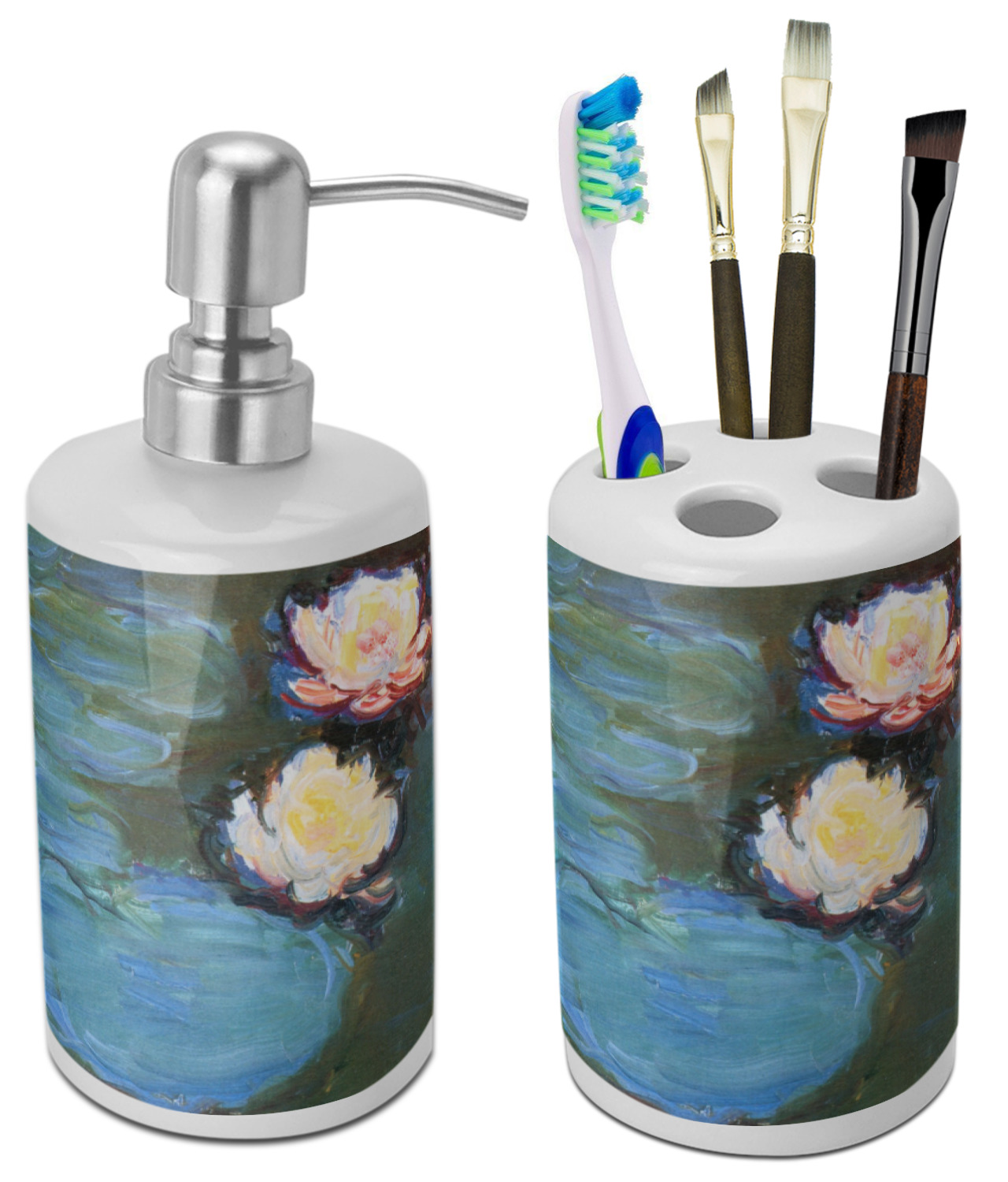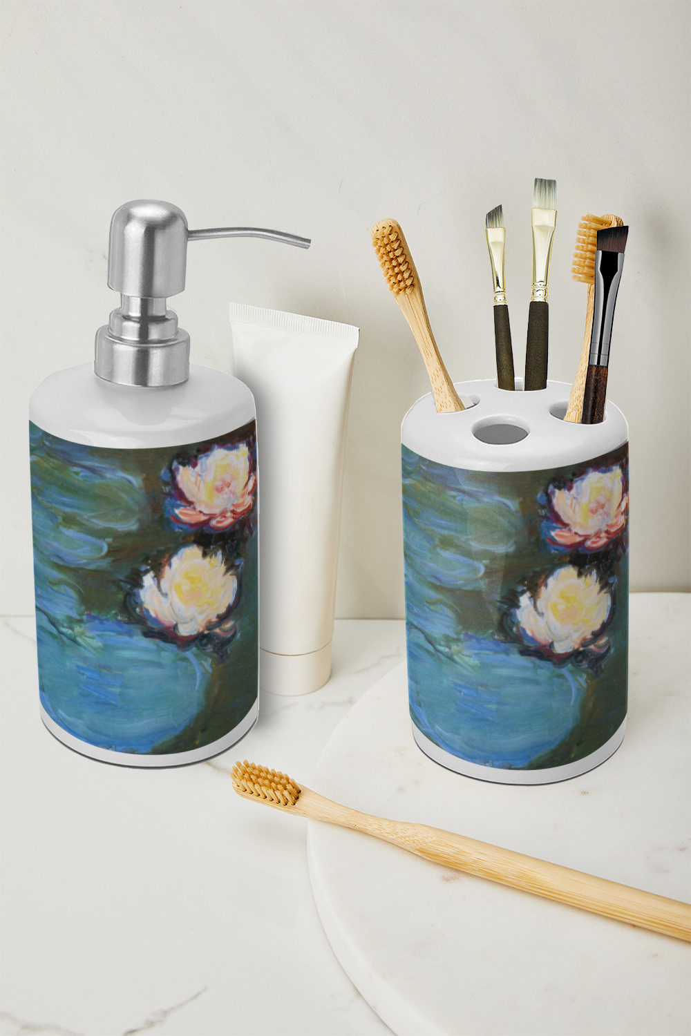 | Product Dimensions | Ceramic Soap / Lotion Dispenser (4" x 3" x 7") Ceramic Toothbrush Holder (3" x 3" x 4.5") |