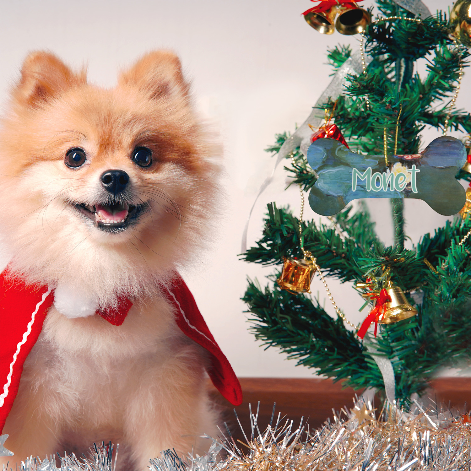 Pets are part of the family, too! Show off your puppy love by creating a personalized ornament for them this Christmas! You'll have their tails wagging hanging up their own custom dog bone ornament! Our customizable ornaments are more than just decorations for the holidays. Use the dog ornament as a nameplate, unique photo frame, or more! Start personalizing your dog ornament today with our online design studio. We offer customizable designs, or you can upload a photo for us to print!