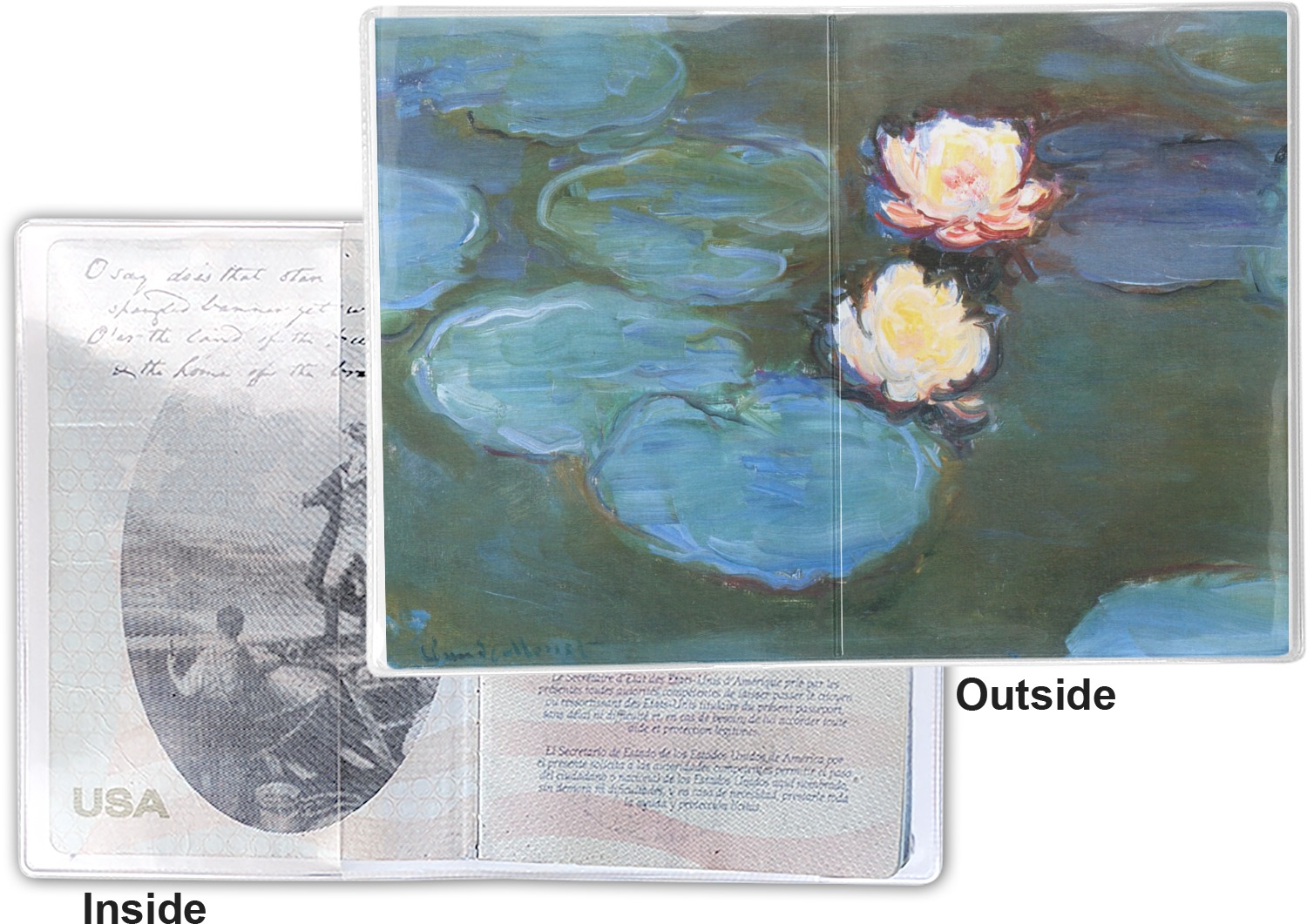 This cover is made of a sturdy clear vinyl with a personalized vinyl insert inside. There is a large and a small pocket on either side to hold the covers of your passport easily and firmly. The passport holder is approximately 7.5" x 5.25", the perfect size to snugly fit your passport. This slim cover is the perfect way to protect your passport without being one more bulky item you have to carry.