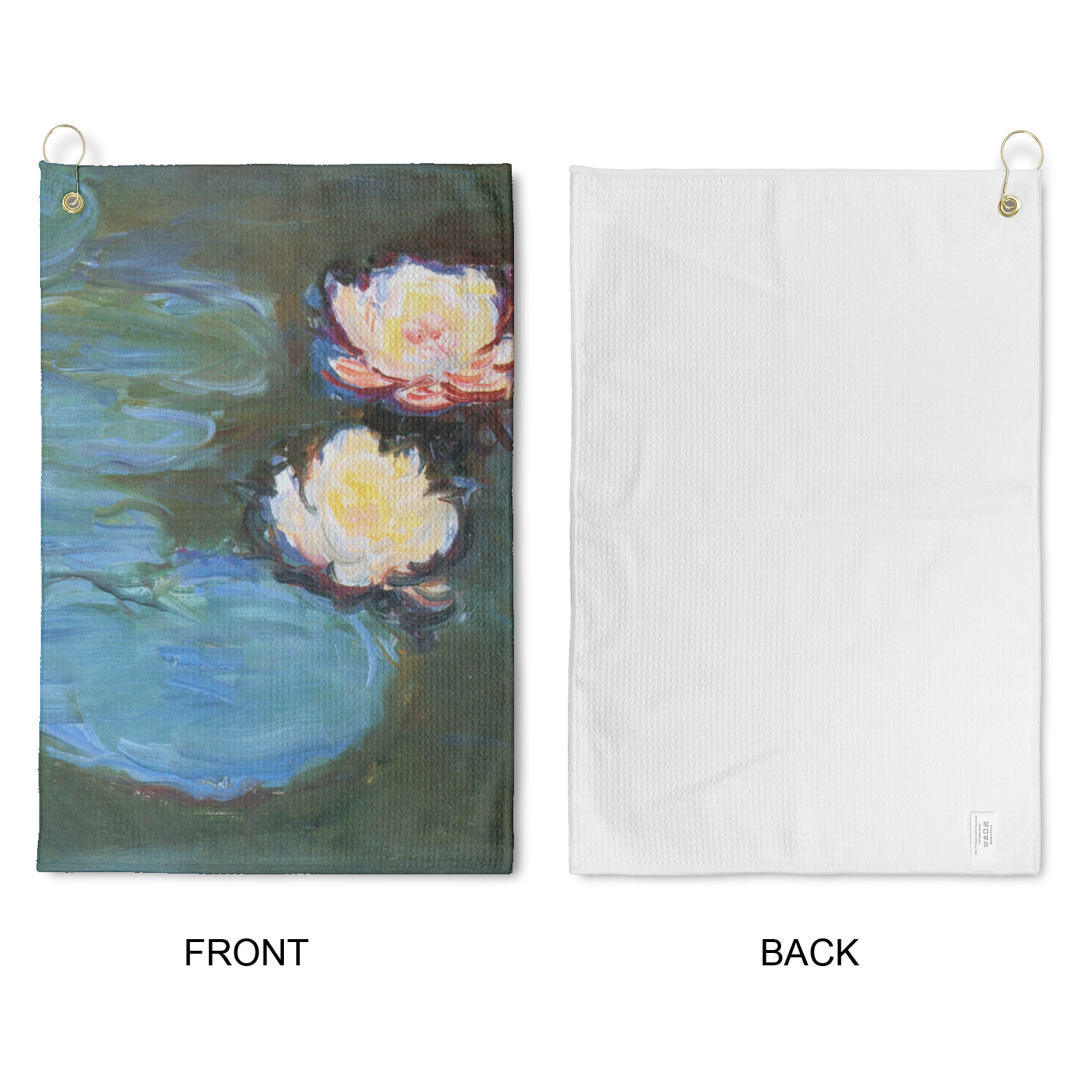 Personalize your design for your towel in our design studio then we will custom print and make it for you. The heavy duty brass grommet and hook are perfect for hanging anywhere you need it to. The waffle weave material is a durable microfiber material that will absorb up to 7 times its weight.