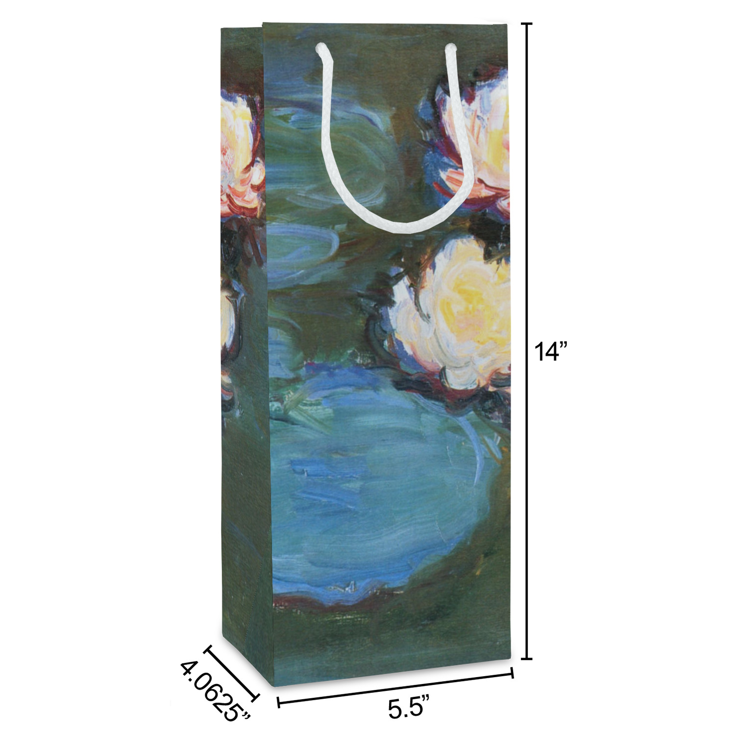 Our wine bags are printed on premium paper. The bags are then cut, scored and folded. The handles and cardstock base it attached. These custom wine bags are printed and made in the USA.