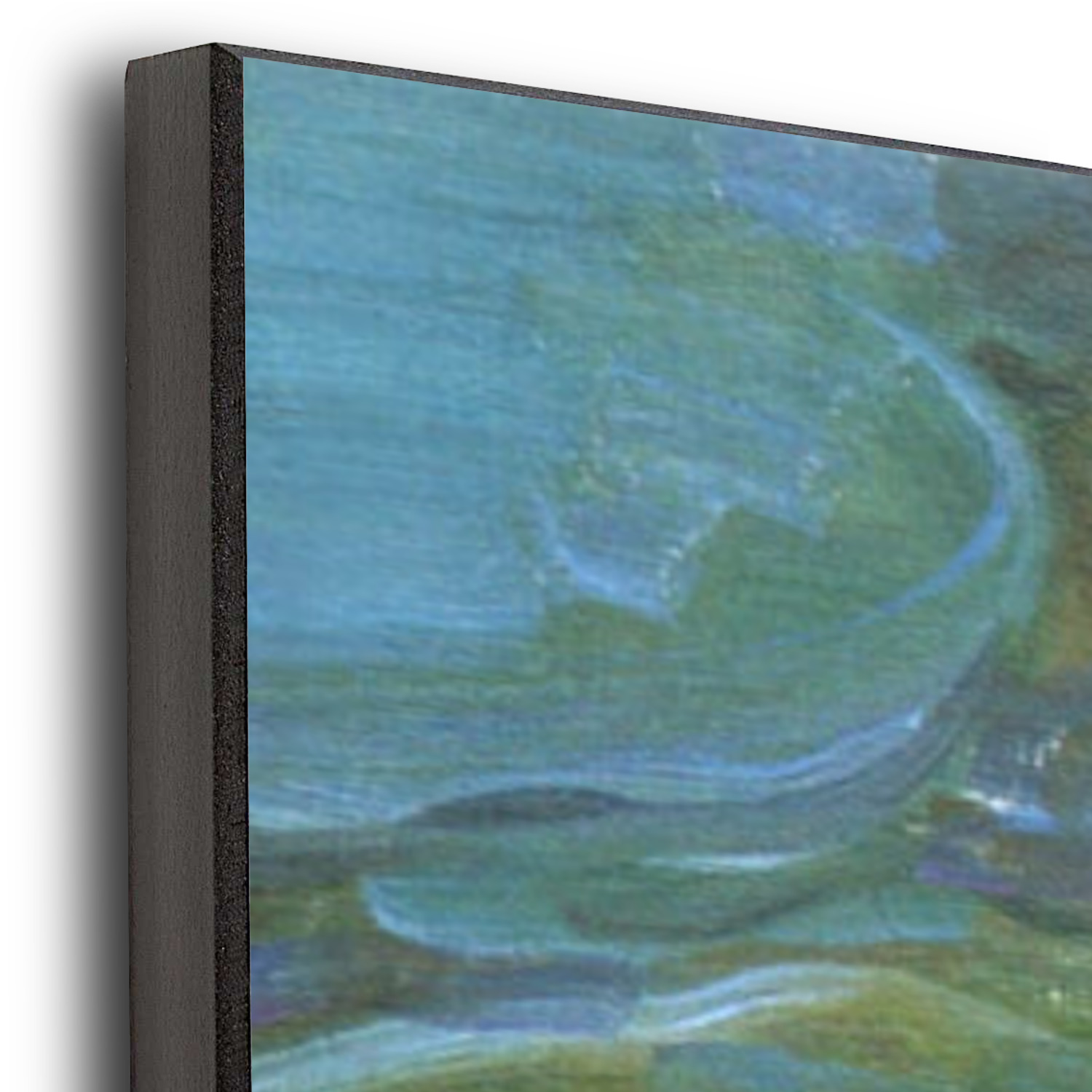 Our wood prints are compromised on a scratch resistant white glossy panel set on 1/2" thick & heavy wood. The sides and back of the wood are black.