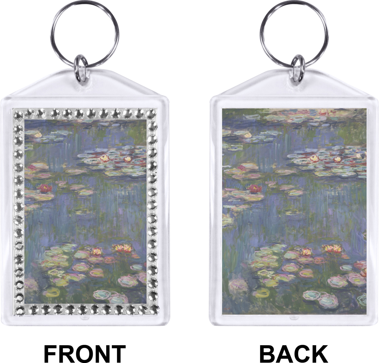 Our personalized keychains have a bold, rectangular shape, outlined by a series of shimmering rhinestones. A metal, split keyring is included with your purchase, and an additional metal hoop allows for attachment of the keychain to the split ring. This unique keychain measures at about 3.75 by 2.5 inches. We print your customized design(s) across both the back and front of this keychain.