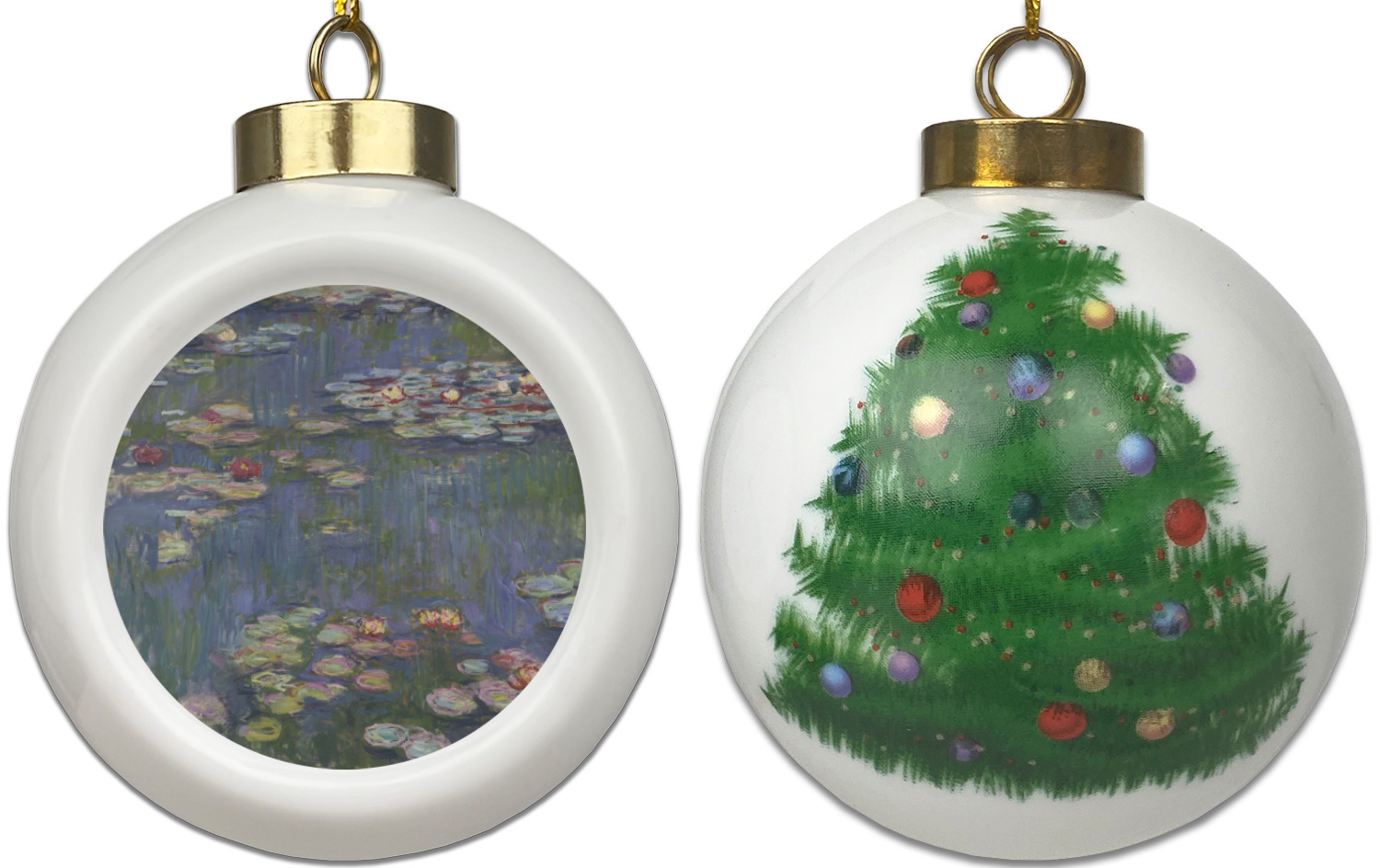 Our Christmas ornaments are a unique ceramic ball shape with a twist as it has a flat face to display your custom design! Select from one of our two design types - Christmas Tree or Poinsettia Garland - to adorn the curved back of your personal design. Each ornament measures 3H x 2.5W x 2D accompanied with a gold string accent for finishing touches to hang on your beautiful Christmas tree!