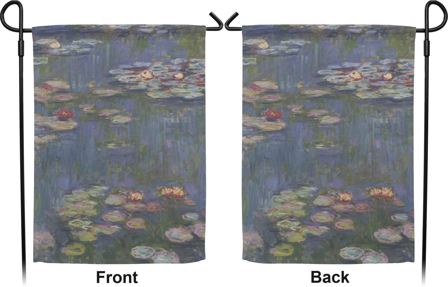 These custom garden flags are made of a durable, double-ply, polyester weave, allowing them to withstand the elements year round. The small flags measure at approximately 12 by 18 inches. The large flags measure out to 28 by 37 inches. You can order these decorative flags with your customization printed on the front only, or the front and back.