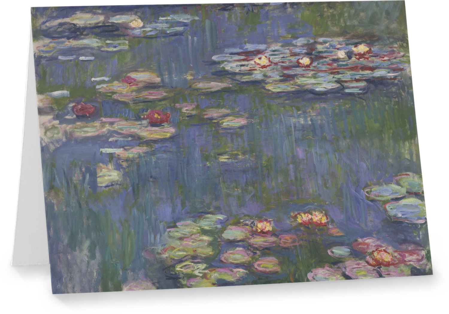 Water Lilies is a series of approximately 250 oil paintings by French Impressionist Claude Monet (1840-1926). The paintings depict Monet's flower garden at his home in Giverny, and were the main focus of Monet's artistic production during the last thirty years of his life. Many of the works were painted while Monet suffered from cataracts. (Source: Wikipedia)