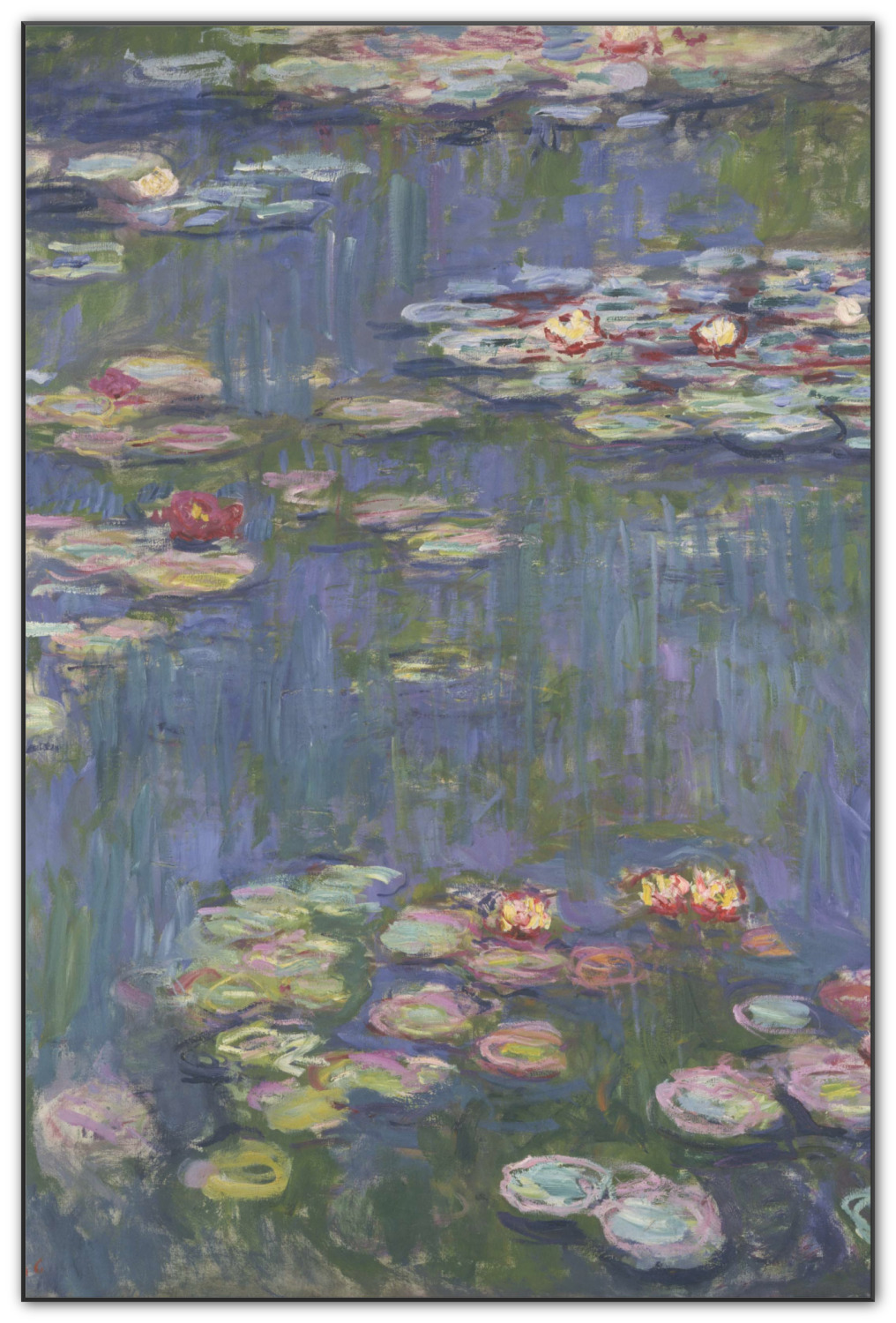 Water Lilies is a series of approximately 250 oil paintings by French Impressionist Claude Monet (1840-1926). The paintings depict Monet's flower garden at his home in Giverny, and were the main focus of Monet's artistic production during the last thirty years of his life. Many of the works were painted while Monet suffered from cataracts. (Source: Wikipedia)