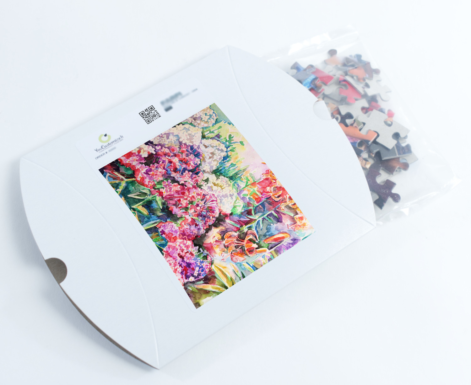We print our puzzles on thick white chipboard in vibrant colors, then laminate the chipboard and die cut your puzzle. Your jigsaw puzzle is shipped to you in a box with the image of the puzzle on the box.