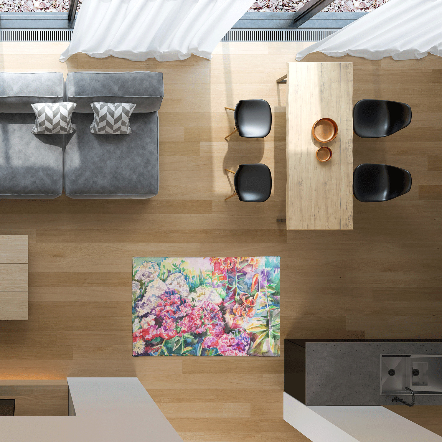 Our custom area rugs are velvety soft and smooth, with a short pile, beautiful sewn corners and edges for a refined and exquisite finished look. The poly chenille face is printed with your design and is sure to brighten up any room with its fabulous look.