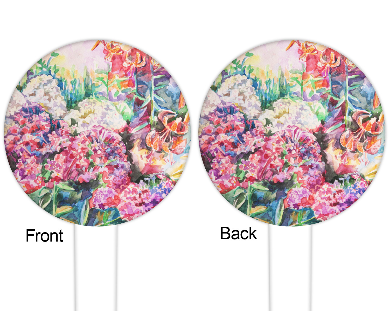 The round disc on these food & drink picks can be customized and personalized to your specifications. Your image will be printed in full color on one side or both sides. You can use the same image on both sides or use two different images.