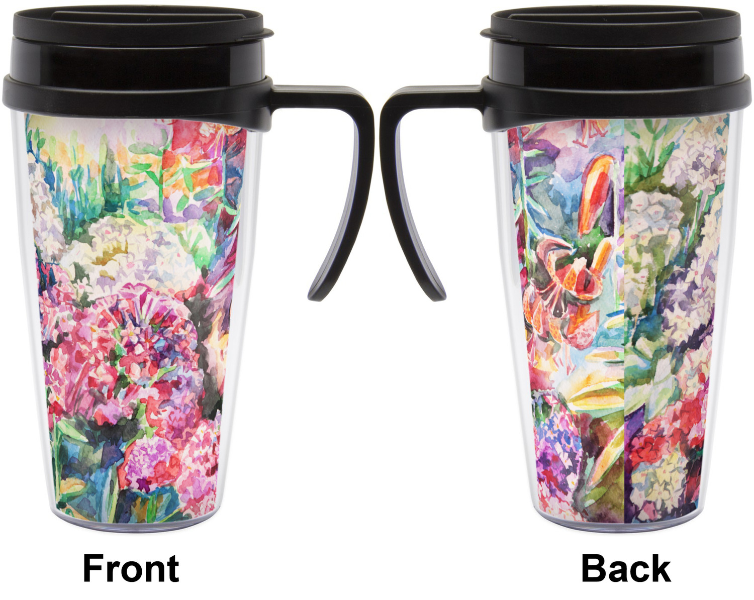 These thermal mugs are free of BPA, and insulated, to keep your drinks hot or cold. The black, snap on lid and the slider for sipping allows you to conveniently sip your drink without constantly worrying about a disastrous spill. We offer this mug with and without a handle, to better suit your needs. Each custom thermal mug holds up to 16 ounces of liquid and displays your customization on all sides on premium gloss media inserts.