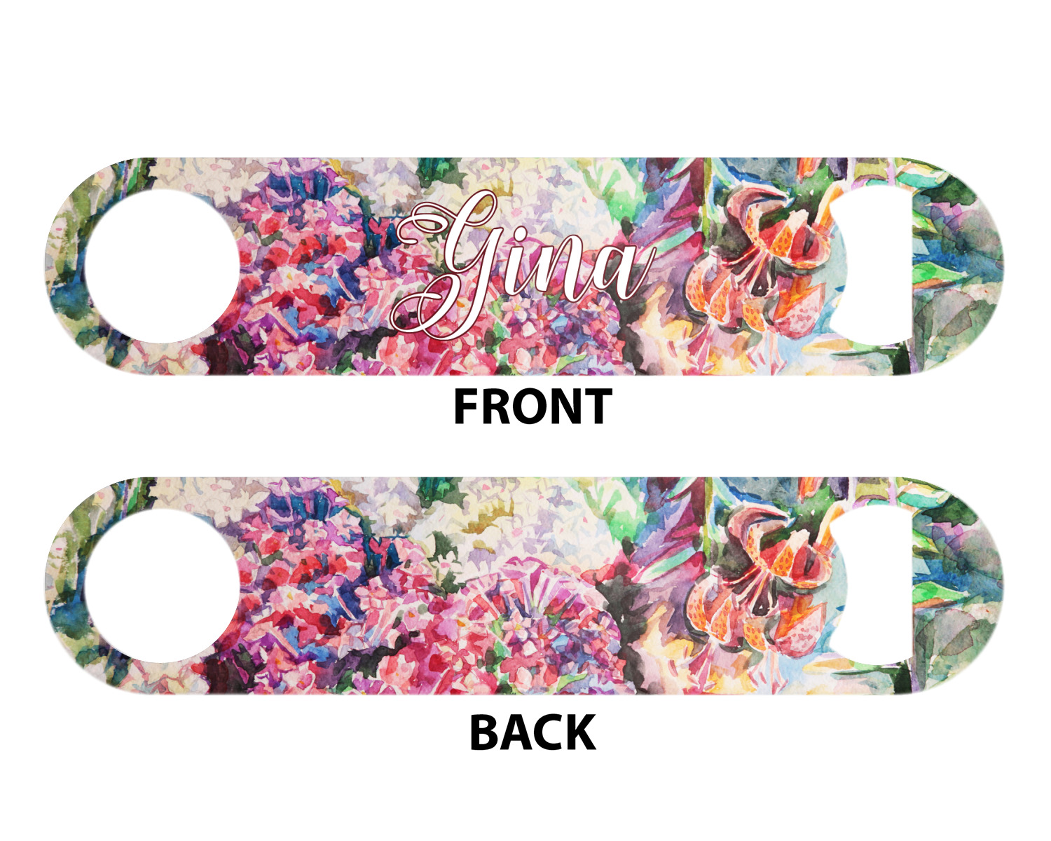 Made from stainless steel, these beer bottle openers are 7 by 1.625 inches, giving you plenty of leverage when trying to open a stubborn bottle. On one end of this personalized bottle opener, you'll find a circular hole for you to hang and display your opener. On the opposite end, you'll find the tool used for opening bottles. This opener in particular has the same structure and style as professional bartender bottle openers. Your customization is sublimated onto both the back and front, and both sides can be customized individually. Choose from one of our two base colors - white or silver.