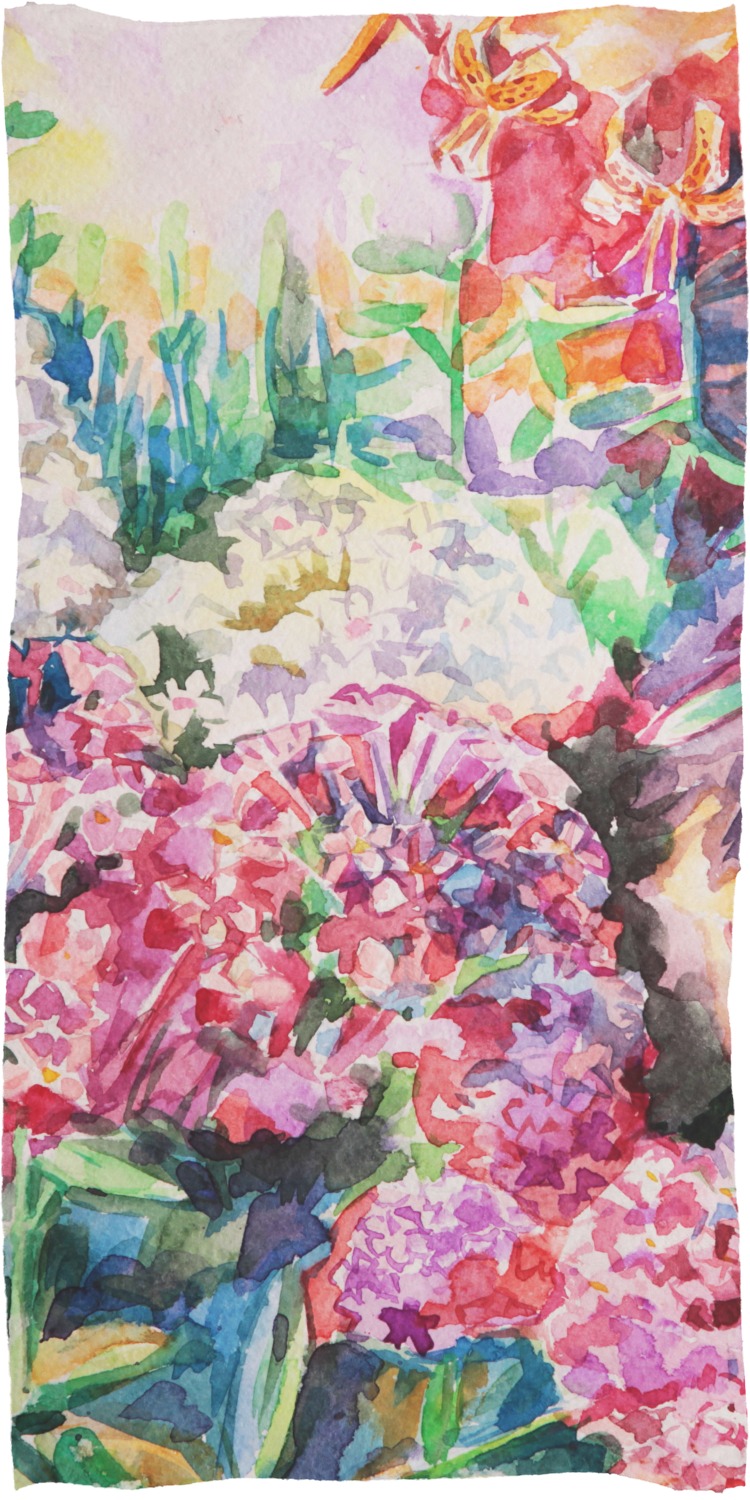 This handmade watercolor floral painting is absolutely stunning. The painting is set in a garden and it has my favorite flowers - the tiger lily in full bloom along with phlox / hydrangea. The tiger lilies are painted in those beautiful pink / orange colors. The phlox / hydrangea are painted in white and the pink / orange colors.