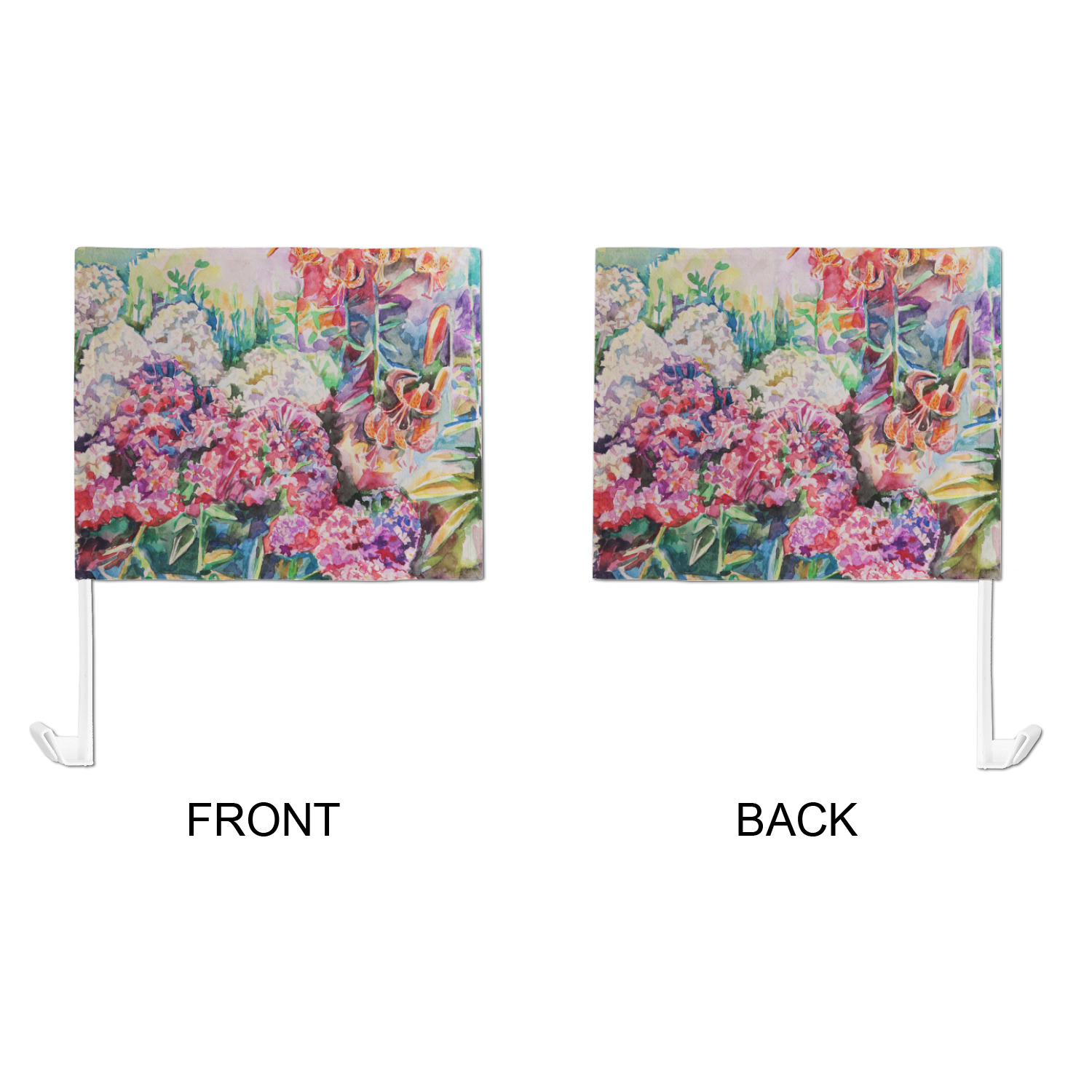 Our personalized flags are made from a durable, yet lightweight cloth that will proudly bear your logo or design of choice, while withstanding the outside elements. We have two size options - 8" x 11" and 11" x 15". Both come with a flag pole which includes a clip that secures the pole to the side window, whether it is rolled up or down. The flags are printed on both sides to display your design from all directions.