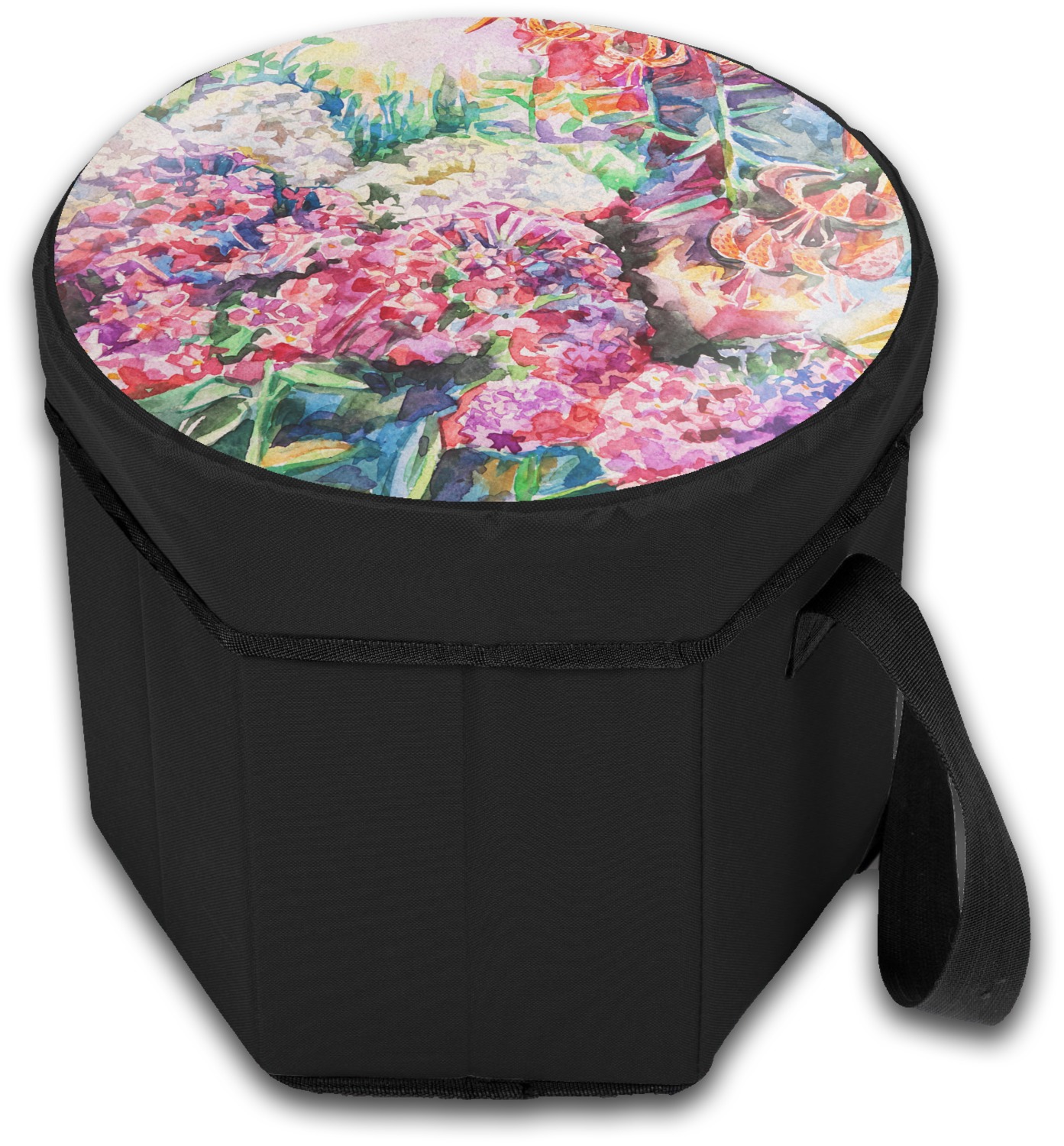 Our collapsible insulated coolers feature a unique six-sided hexagon shape, are lightweight, durable and can be turned into a seat. This cooler is fully insulated with silver foil lining to keep food and drinks hot or cold, and has a 12-quart capacity. Although this cooler collapses for easy transport, hidden inside are composition panels made of sturdy wood that give the frame strength and allow this cooler to be used as a seat. Simply sit down on the personalized cover and give your legs a break! (Maximum weight capacity of 200 pounds.)