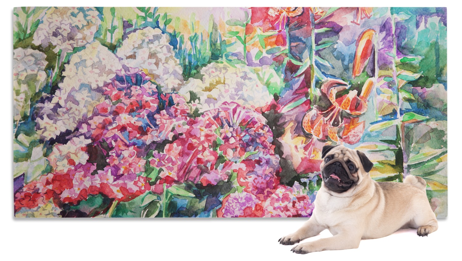 Our custom towels are crafted from a special blend of polyester and polyamide, which contributes to its lightweight, yet thoroughly absorbent nature. We craft it as such to guarantee efficiency as a convenient product; its lightweight nature makes it easy to roll up and carry along, yet it is still able to dry off even the wettest, muddiest pet. It measures at 60" x 30" and is sizable enough to dry off even the largest of pets. With our towel's gentle, soft-to-the-touch material, your pet will be sure to anticipate its warm, dry embrace. We print your personalized design on the front of the towel, while the back is white.