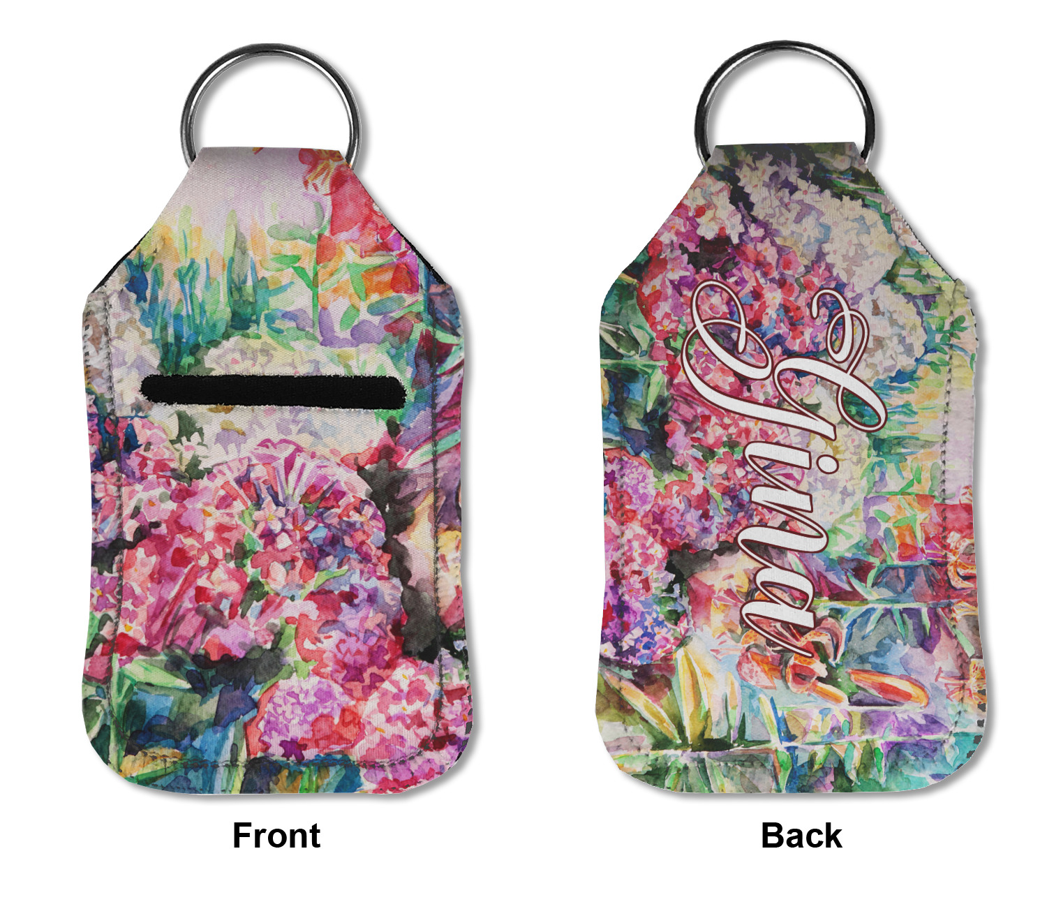 Each hand sanitizer holder comes with its own empty travel-sized, refillable hand sanitizer sure to fit snug in your customized sanitizer case! Our hand sanitizer cases are a durable, yet soft neoprene material sure to last any daily activities or travel agenda. Customize and personalize a hand sanitizer bottle holder with one of our two sizes - small (4.25" x 2.25") or large (5.5" x 2.5"). Each travel sanitizer holder comes with a keyring for attachment on bags, keys, or more!