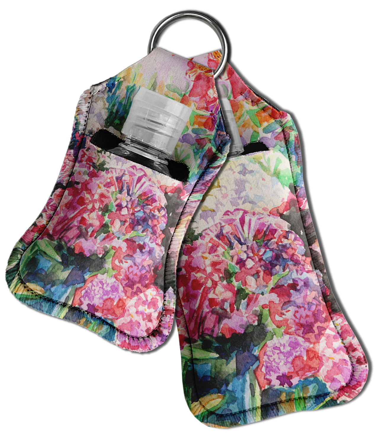 Each hand sanitizer holder comes with its own empty travel-sized, refillable hand sanitizer sure to fit snug in your customized sanitizer case! Our hand sanitizer cases are a durable, yet soft neoprene material sure to last any daily activities or travel agenda. Customize and personalize a hand sanitizer bottle holder with one of our two sizes - small (4.25" x 2.25") or large (5.5" x 2.5"). Each travel sanitizer holder comes with a keyring for attachment on bags, keys, or more!