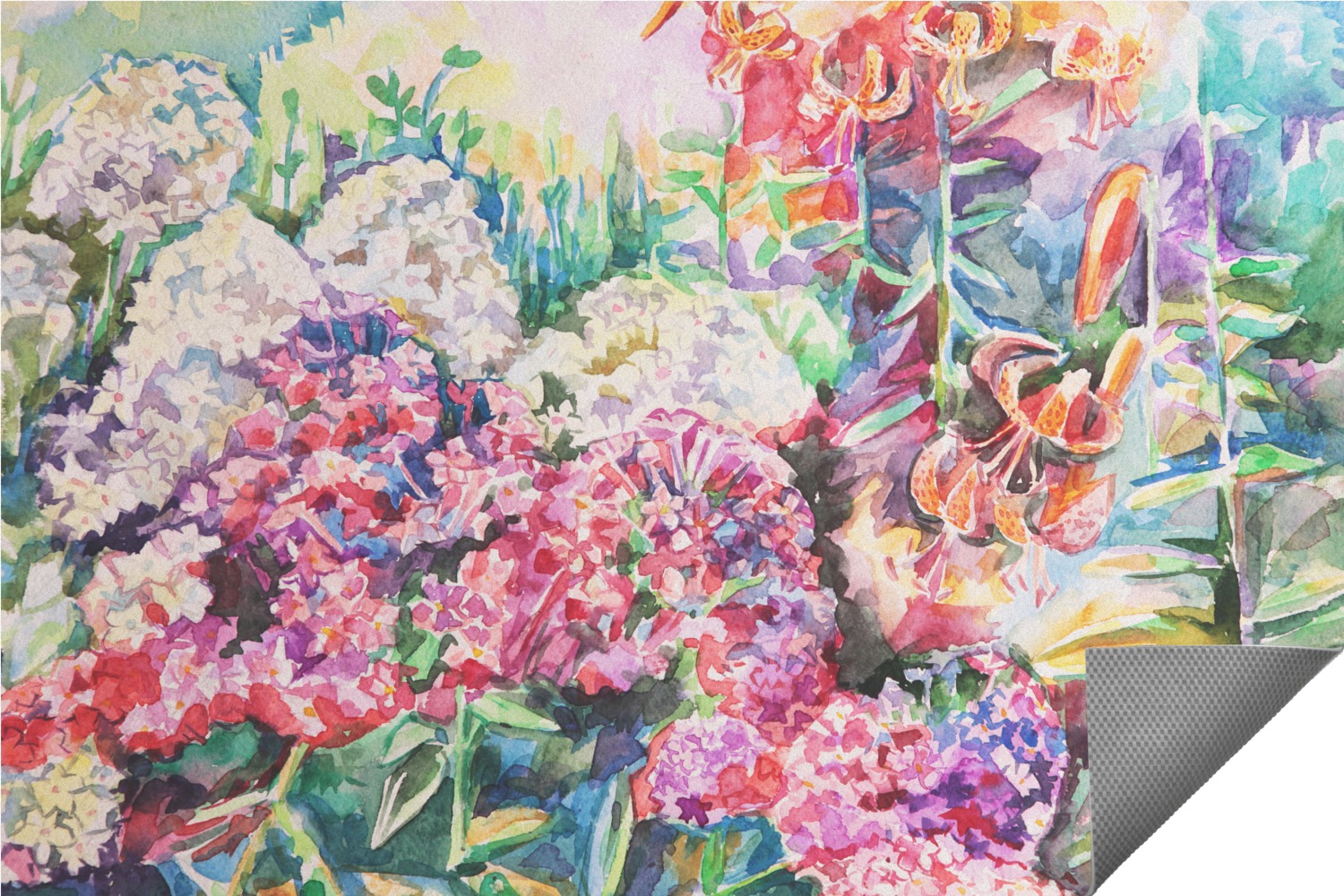 This handmade watercolor floral painting is absolutely stunning. The painting is set in a garden and it has my favorite flowers - the tiger lily in full bloom along with phlox / hydrangea. The tiger lilies are painted in those beautiful pink / orange colors. The phlox / hydrangea are painted in white and the pink / orange colors.
