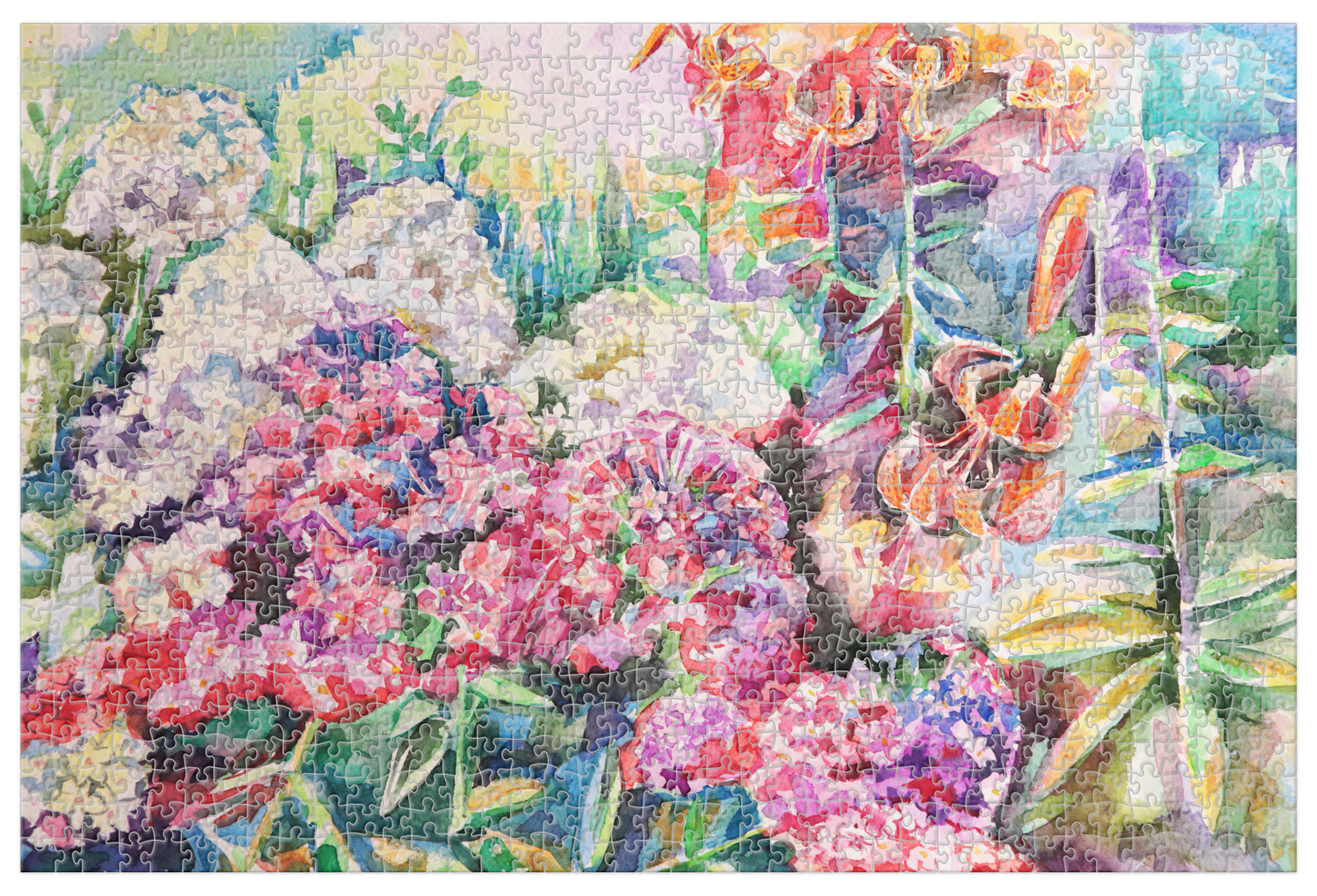 This handmade watercolor floral painting is absolutely stunning. The painting is set in a garden and it has my favorite flowers - the tiger lily in full bloom along with phlox / hydrangea. The tiger lilies are painted in those beautiful pink / orange colors. The phlox / hydrangea are painted in white and the pink / orange colors.