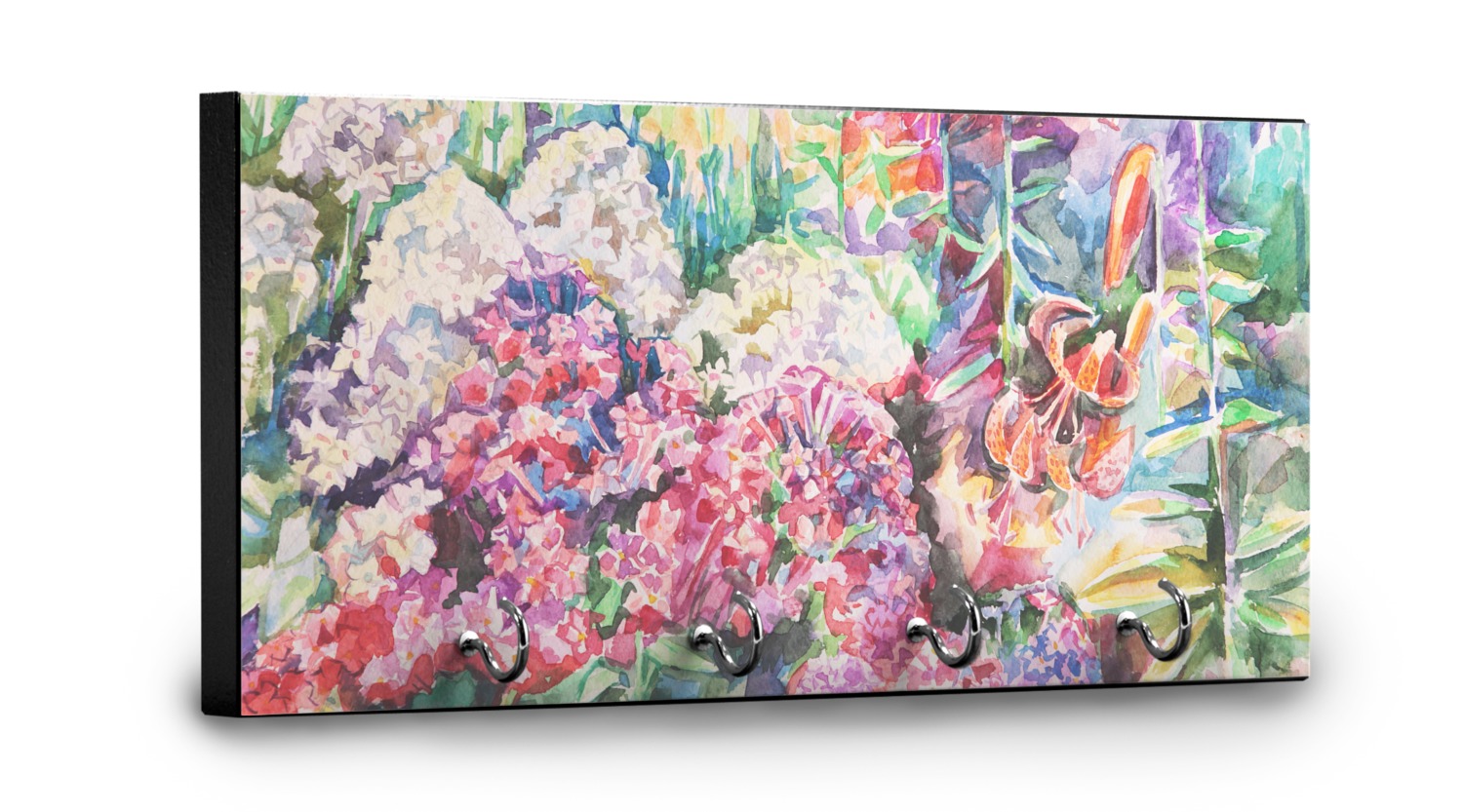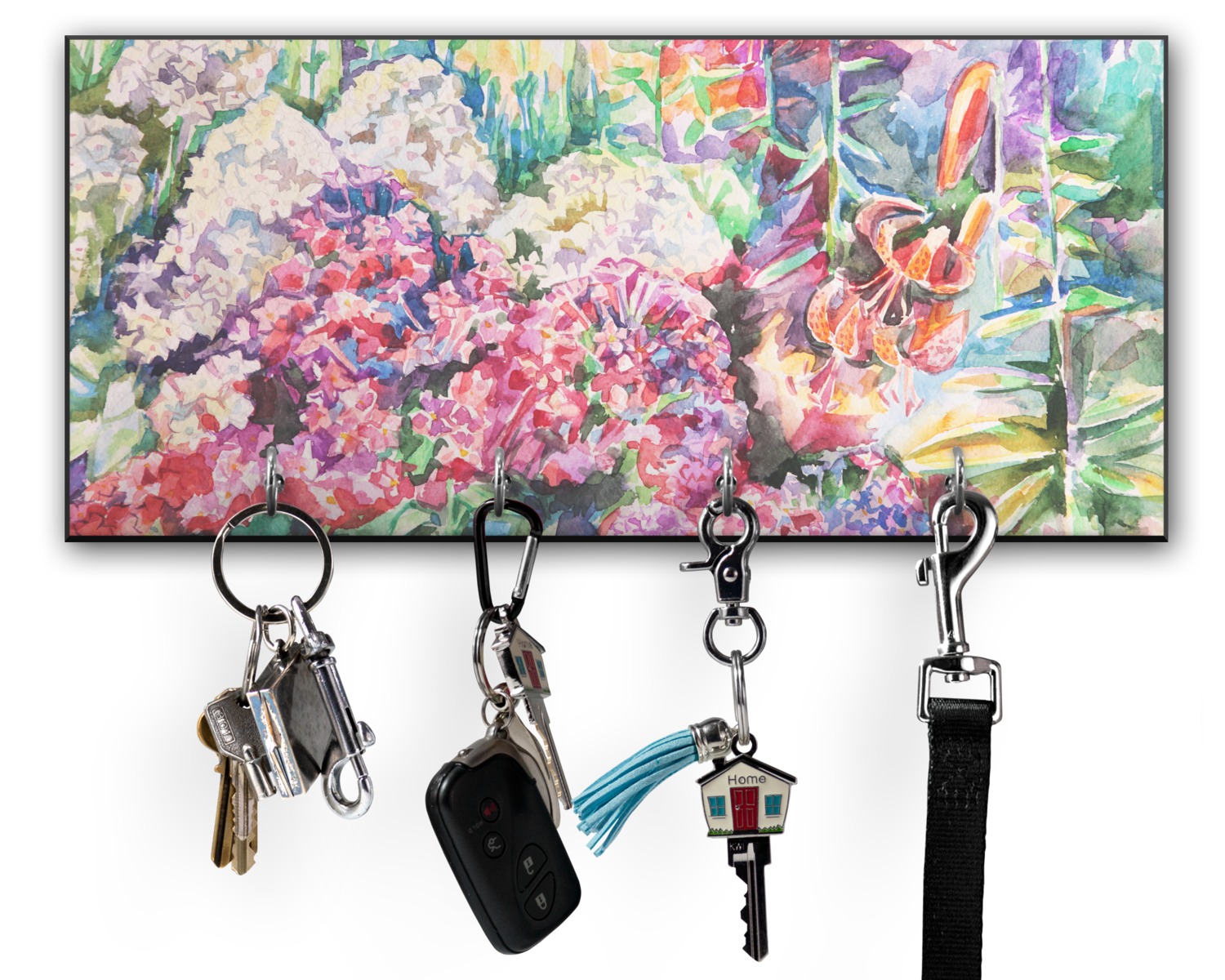 This 11" x 5" key hanger is made of sturdy wood and has four metal hooks lining the bottom. This is the perfect size for a family with several drivers. Not only can you hang keys on it though, but pet leashes and other small items. The board is black on the sides and back and is printed with the design of your choice on the front.