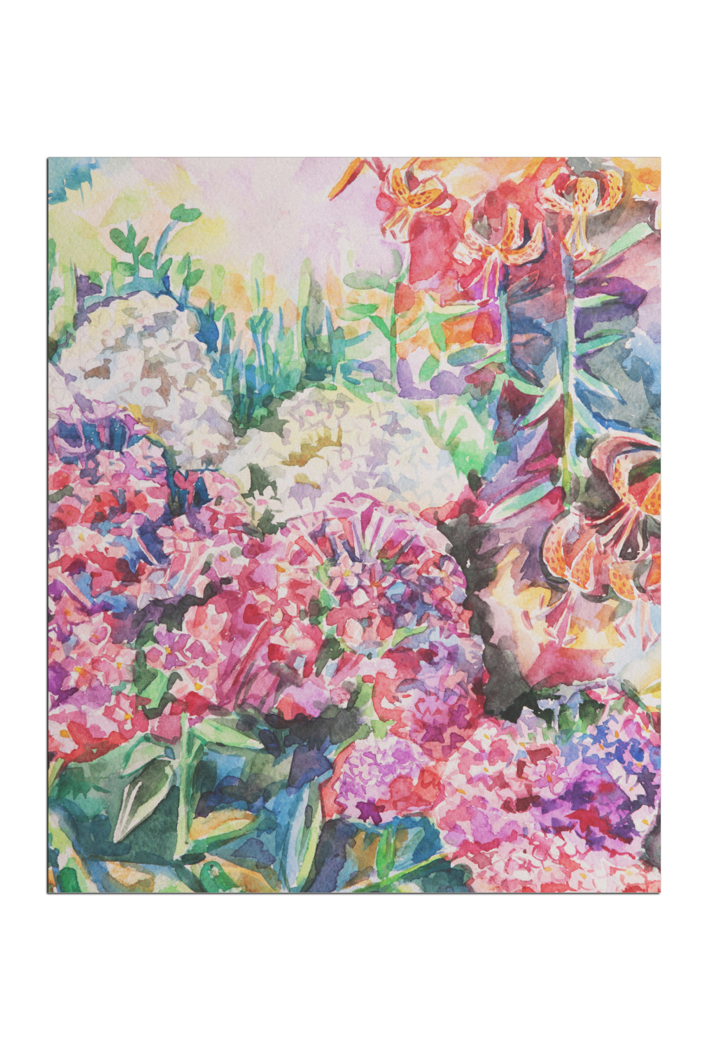 This handmade watercolor floral painting is absolutely stunning. The painting is set in a garden and it has my favorite flowers - the tiger lily in full bloom along with phlox / hydrangea. The tiger lilies are painted in those beautiful pink / orange colors. The phlox / hydrangea are painted in white and the pink / orange colors.