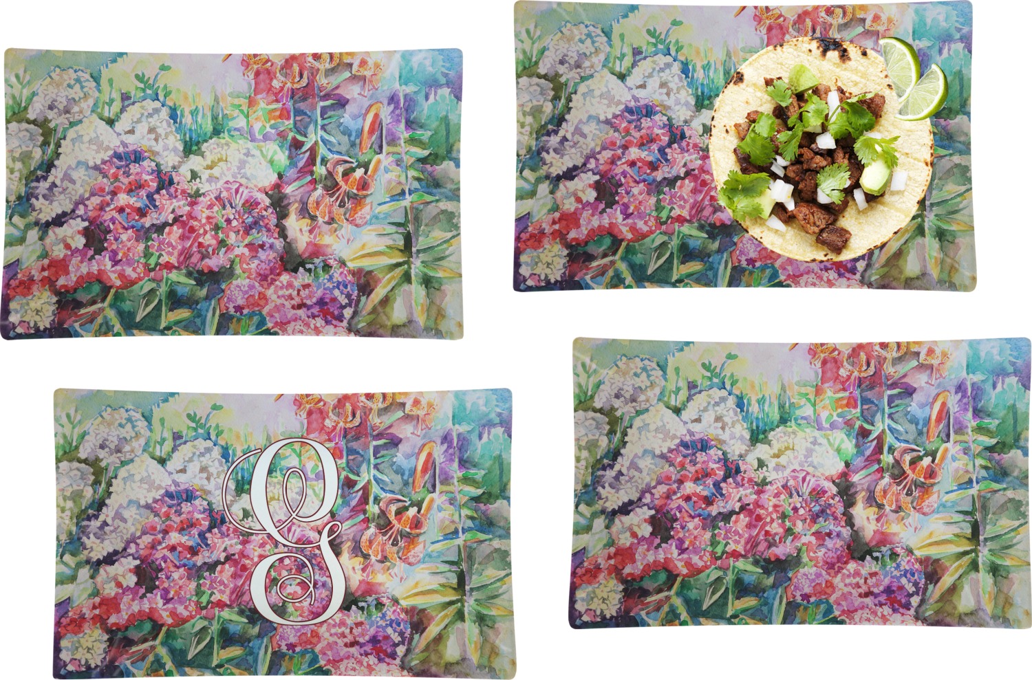 This rectangular plate is about 14" in width and 10" in height; the perfect size for lunch or dinner. These plates are dishwasher safe - proving high in function and in beauty.