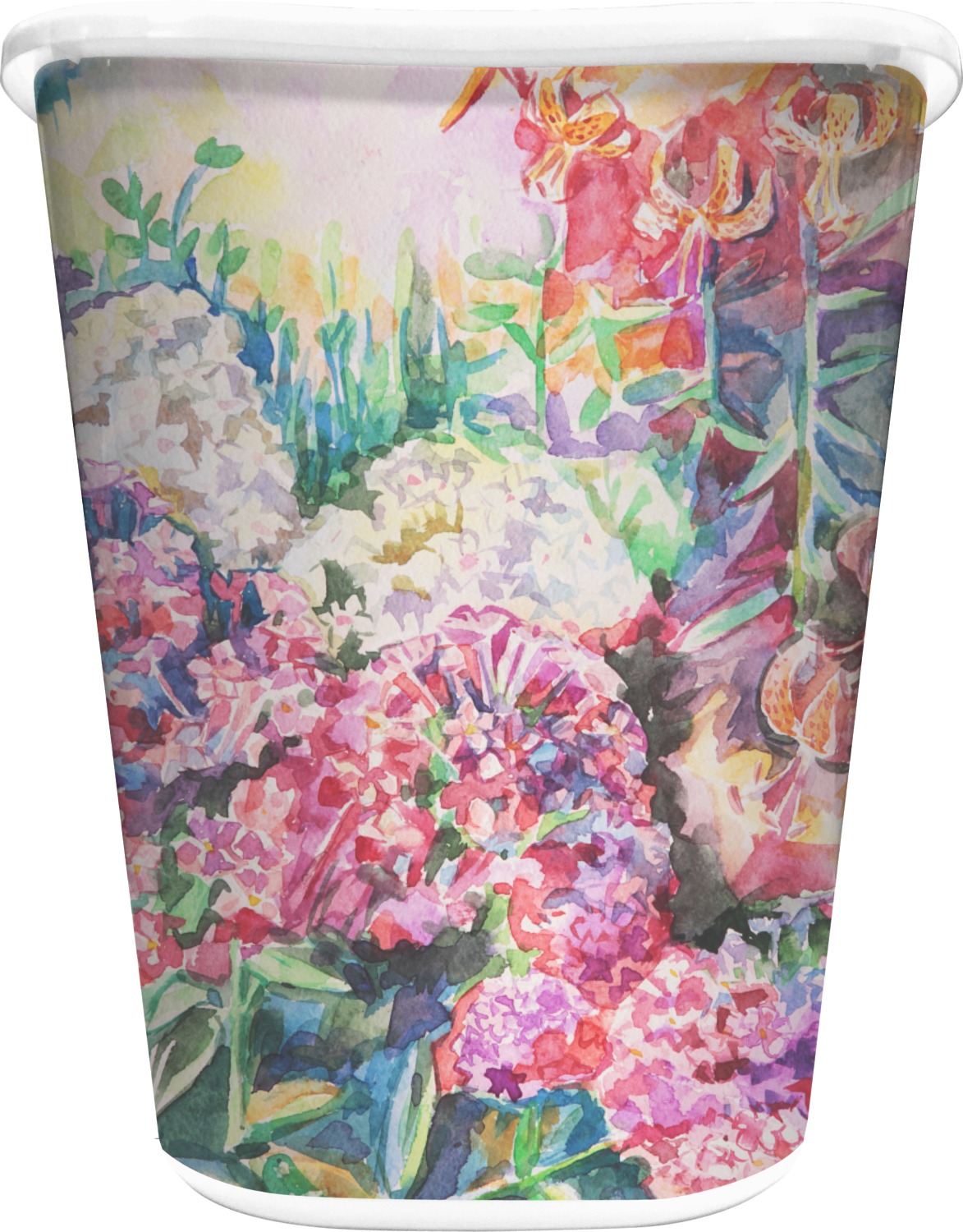 You can choose to purchase these decorative wastebaskets in either a white or a black color that will show on the base and the upper rim. Your customization is printed on a high-gloss, fine-quality vinyl adhesive, and you can choose to either have this adhesive applied to one side only or to both sides. As such, this plastic wastebasket can be single-sided or double-sided, depending on your creative vision. Your customization is printed using durable inks, making the design waterproof and resistant to fading over time.