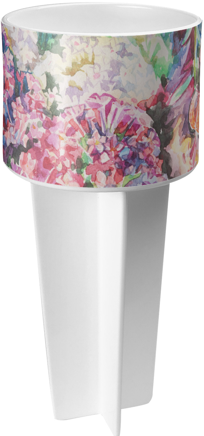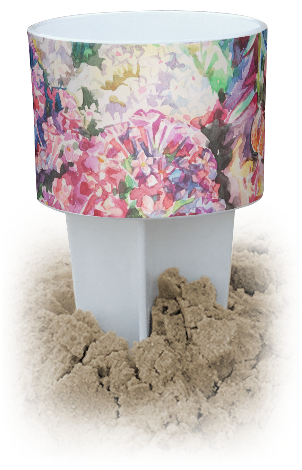 This cup holder has a large stake at its bottom that anchors it to the sand or ground below, while the cup holder rests above the stake. The entire drink holder is made of durable plastic and displays your customization around the cup holder portion. We sell these personalized beach spikers in two different colors: black and white.