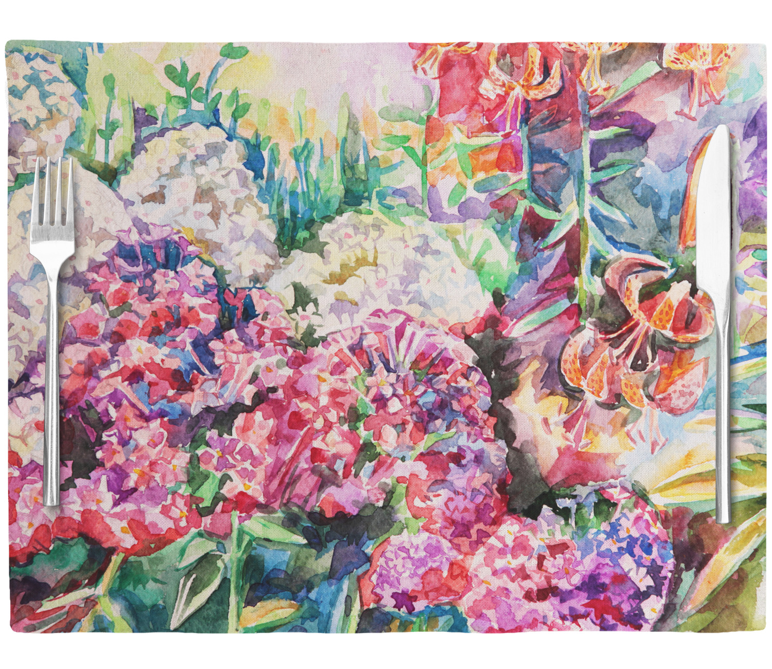 Each of our table mats are a poly twill material with woven burlap detailing. This creates a soft, quality placemat for us to fully print your personalized design across. The woven twill also adds a wrinkle-free surface to set your table! Each customizable placemat is a rectangle shape measuring at approximately 13 x 18 and printed here in the USA.