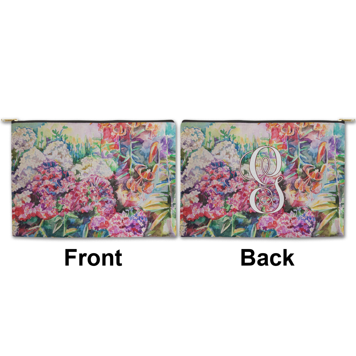 You can design both the front and the back of the pouch - same design, two complementary designs or two totally different designs - the choice is yours! We offer many different personalization styles i.e. name, name & initial, monograms - so the choice to personalize is also yours.