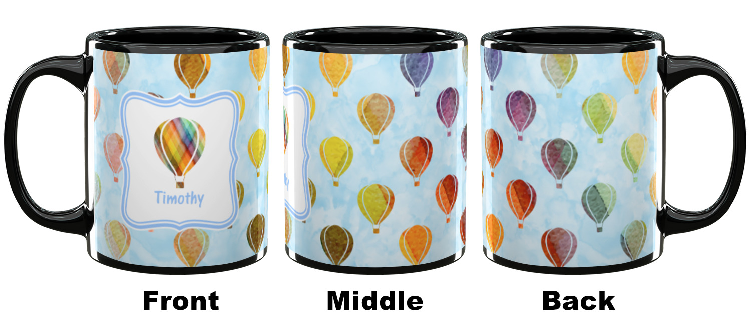 Our ceramic mugs have your design or photo printed along the surface with a gloss finish. The ceramic material of our mugs is dishwasher and microwave safe so you can reheat your tea or coffee if needed! We offer two different base colors with multiple mug sizes. The white ceramic mugs come in three size options - 11 oz., 15 oz., and 20 oz. Our black ceramic mugs are sold in either 11 oz. or 15 oz. sizes.