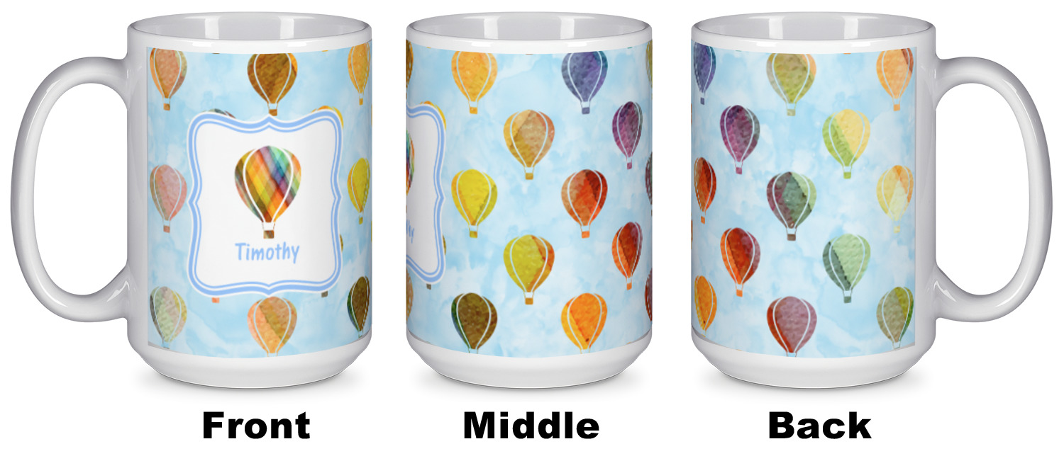 Our ceramic mugs have your design or photo printed along the surface with a gloss finish. The ceramic material of our mugs is dishwasher and microwave safe so you can reheat your tea or coffee if needed! We offer two different base colors with multiple mug sizes. The white ceramic mugs come in three size options - 11 oz., 15 oz., and 20 oz. Our black ceramic mugs are sold in either 11 oz. or 15 oz. sizes.