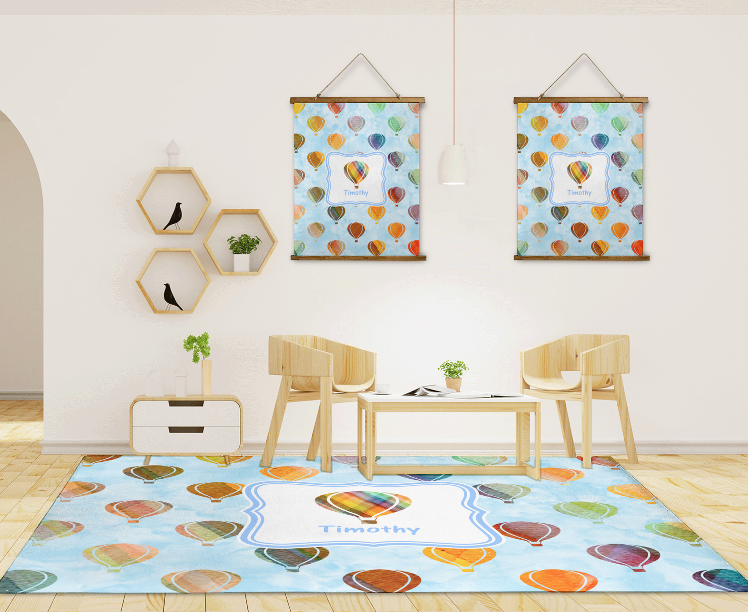 We chose to personalize it with a decorative square label and our graphics & text style. We chose to use a hot air balloon as our graphic from our transportation collection and used a name for personalization. We chose baby blue for our color to coordinate with the sky.