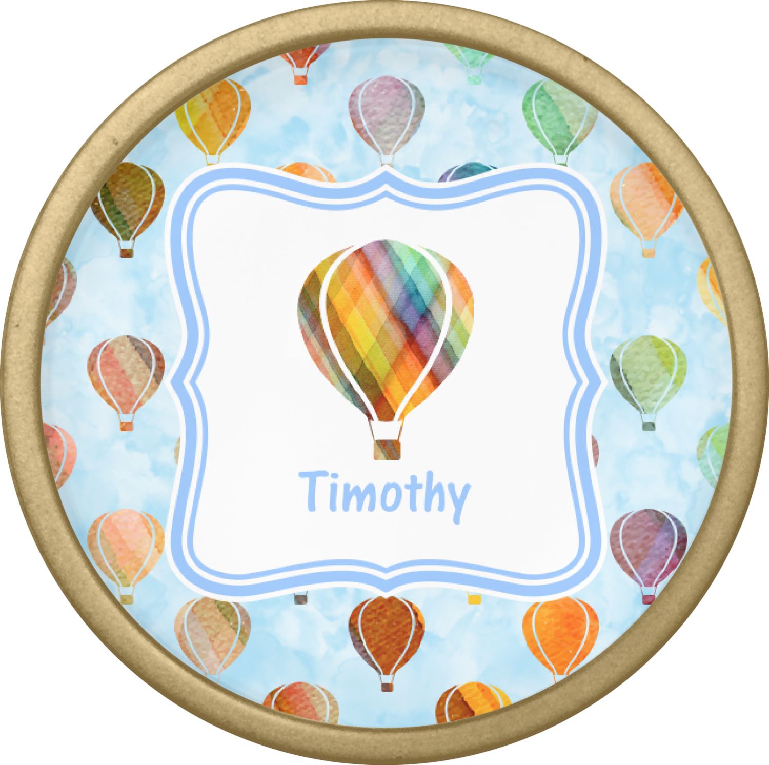 We chose to personalize it with a decorative square label and our graphics & text style. We chose to use a hot air balloon as our graphic from our transportation collection and used a name for personalization. We chose baby blue for our color to coordinate with the sky.