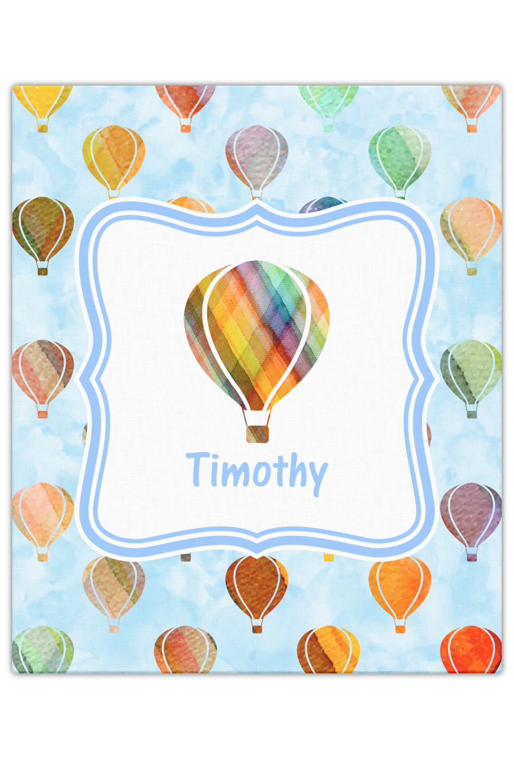 We chose to personalize it with a decorative square label and our graphics & text style. We chose to use a hot air balloon as our graphic from our transportation collection and used a name for personalization. We chose baby blue for our color to coordinate with the sky.