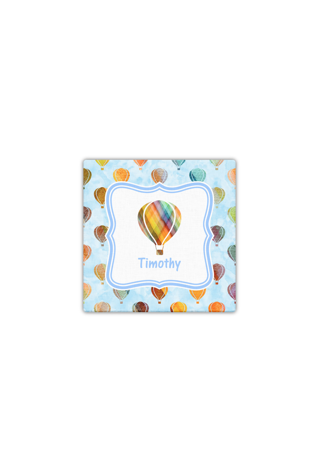We chose to personalize it with a decorative square label and our graphics & text style. We chose to use a hot air balloon as our graphic from our transportation collection and used a name for personalization. We chose baby blue for our color to coordinate with the sky.
