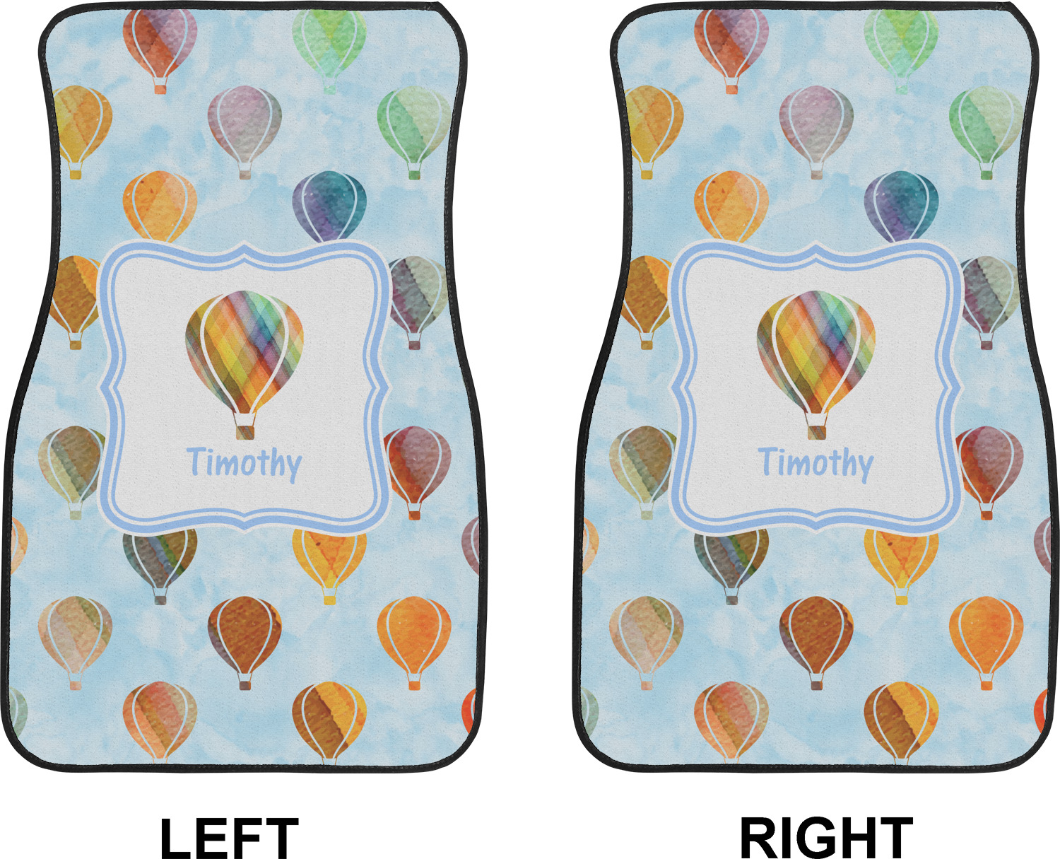 We chose to personalize it with a decorative square label and our graphics & text style. We chose to use a hot air balloon as our graphic from our transportation collection and used a name for personalization. We chose baby blue for our color to coordinate with the sky.