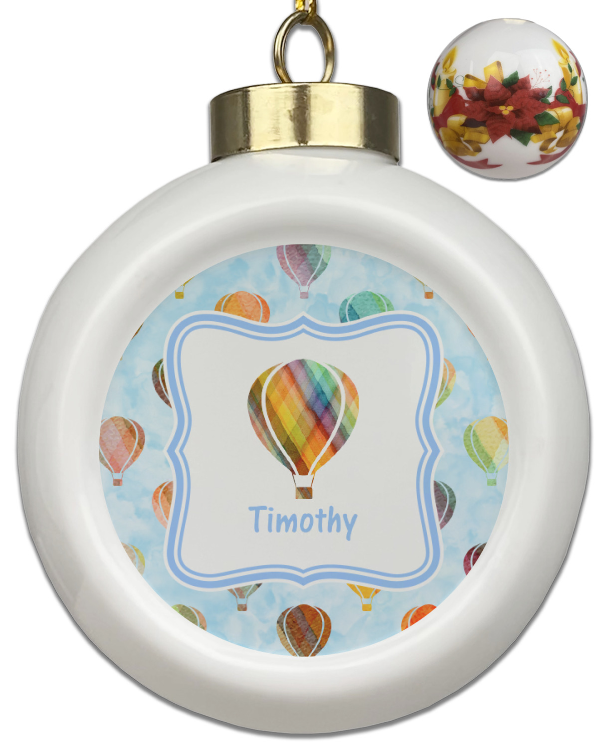 Our Christmas ornaments are a unique ceramic ball shape with a twist as it has a flat face to display your custom design! Select from one of our two design types - Christmas Tree or Poinsettia Garland - to adorn the curved back of your personal design. Each ornament measures 3H x 2.5W x 2D accompanied with a gold string accent for finishing touches to hang on your beautiful Christmas tree!