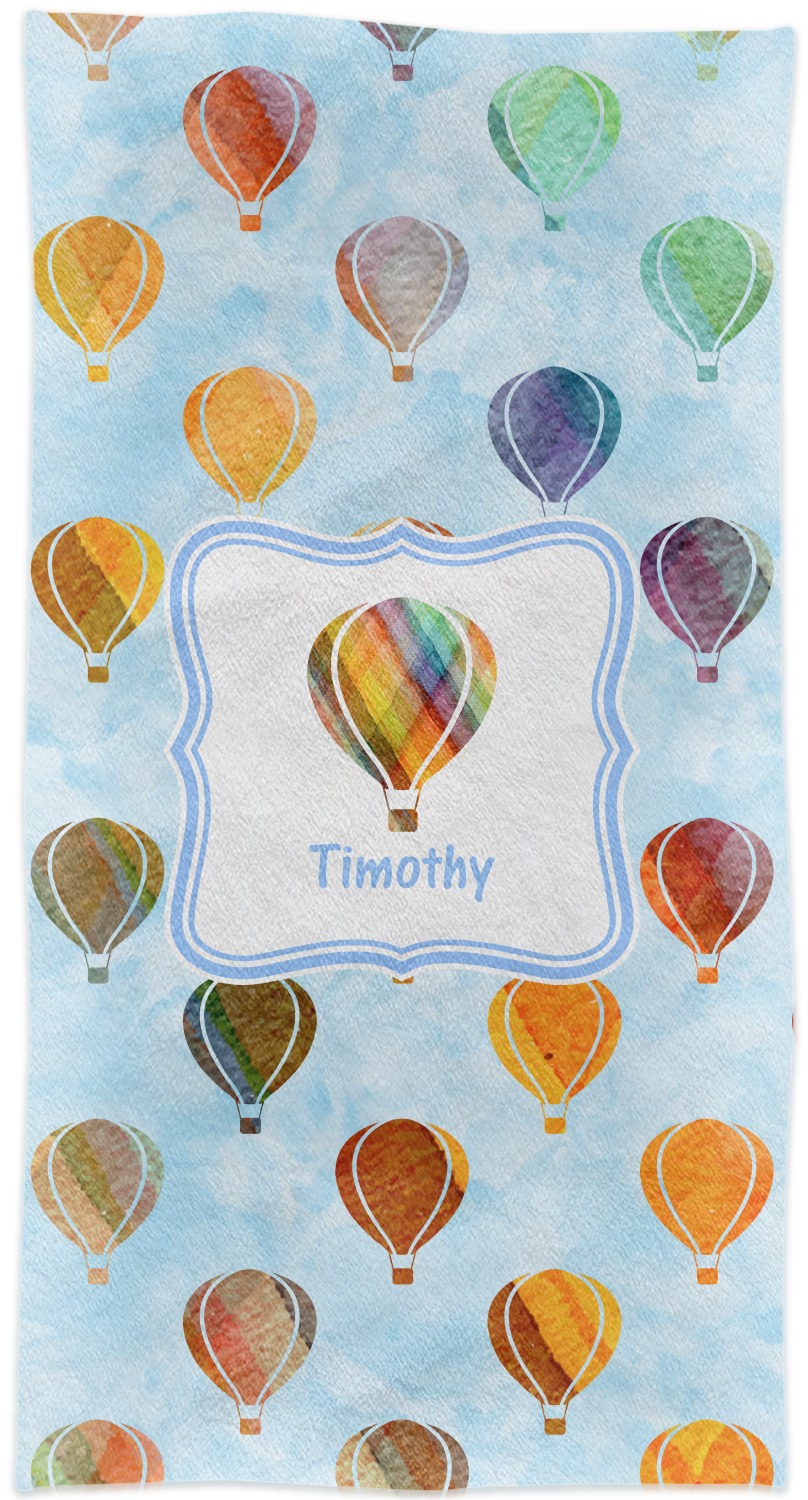 This watercolor hot air balloons design is simply adorable. The design background is the blue sky done in watercolor. The hot air balloons are also done in watercolors; in shades of oranges, reds, greens & teals.
