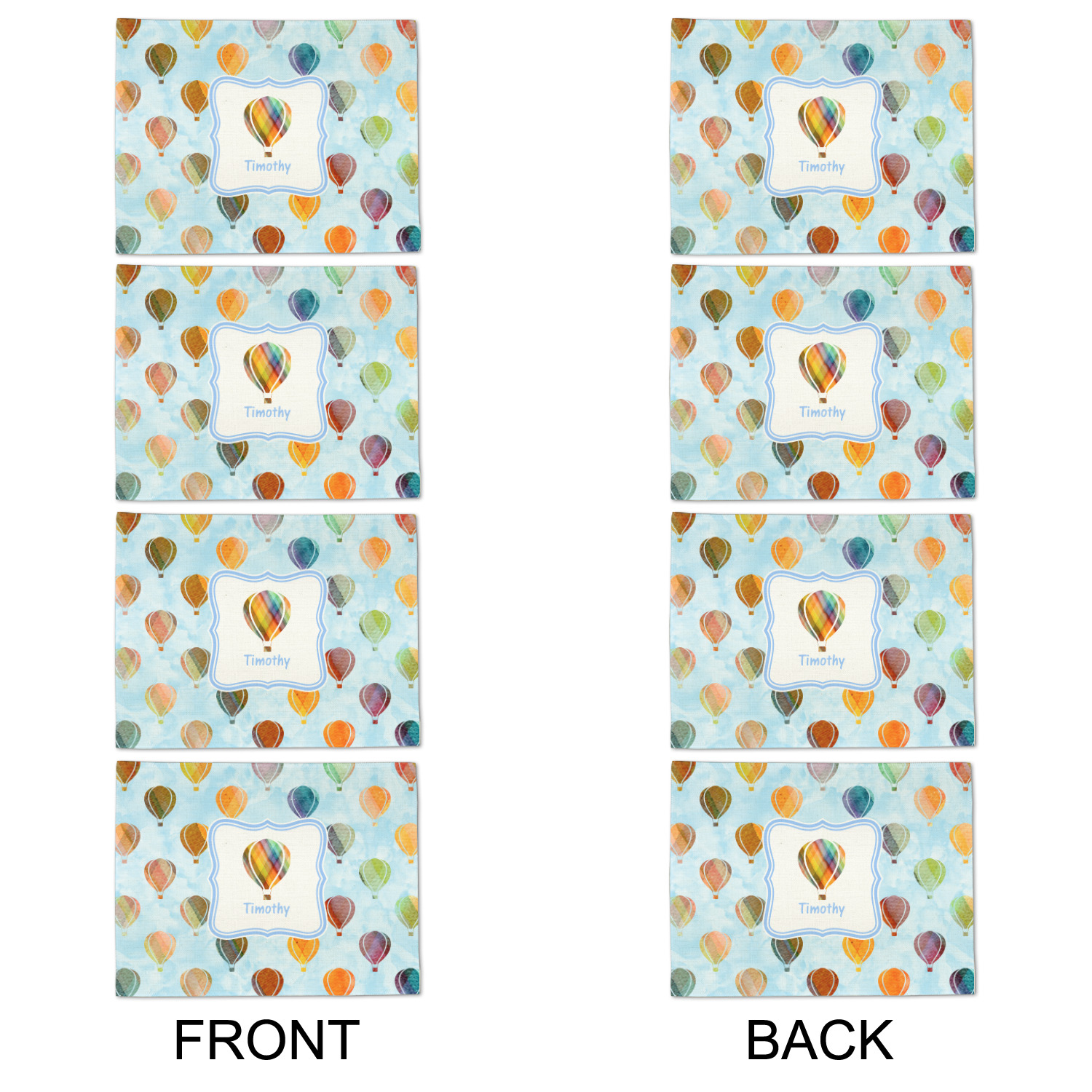 We chose to personalize it with a decorative square label and our graphics & text style. We chose to use a hot air balloon as our graphic from our transportation collection and used a name for personalization. We chose baby blue for our color to coordinate with the sky.